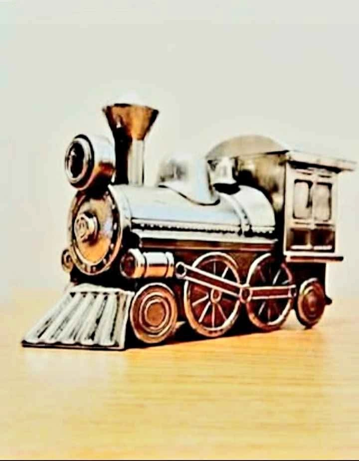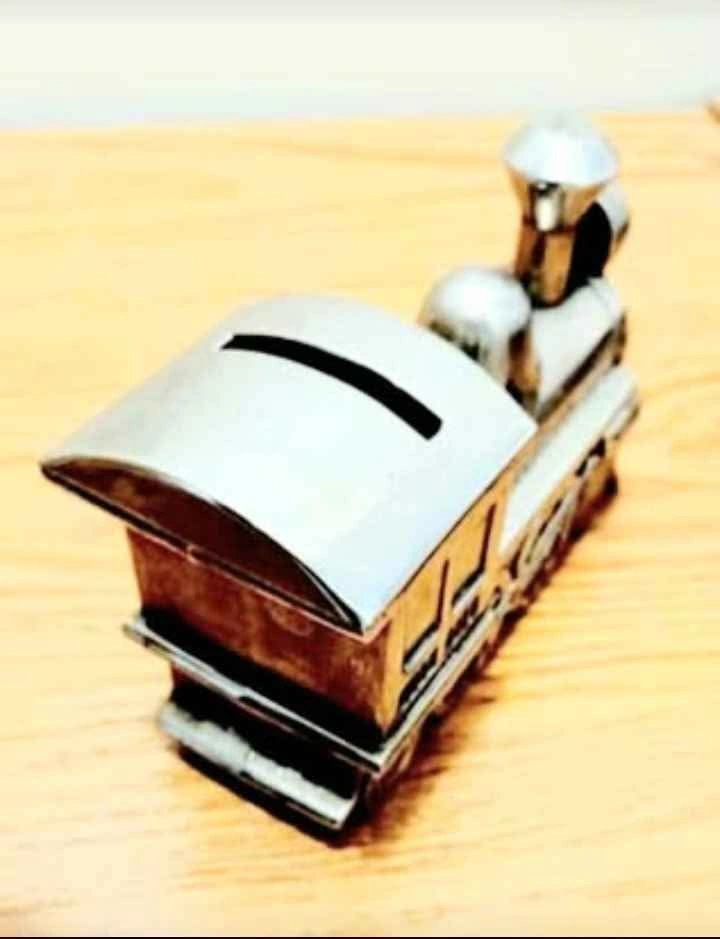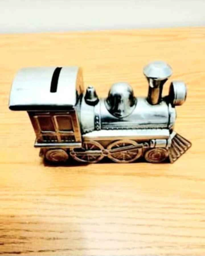 65Choo-choo! All aboard the savings train with this adorable, used train bank! Crafted from sturdy metal with intricate detailing, this locomotive is ready to safeguard your pennies. The coin slot is located at the top rear of the train, and it is easily emptied via a plug in the base. This charming piece isn't just a bank; it's a delightful decorative item for any train enthusiast or vintage collector! Perfect as a gift for a loved one or for yourself! unique treasure. Please check out my other rare collectibles!