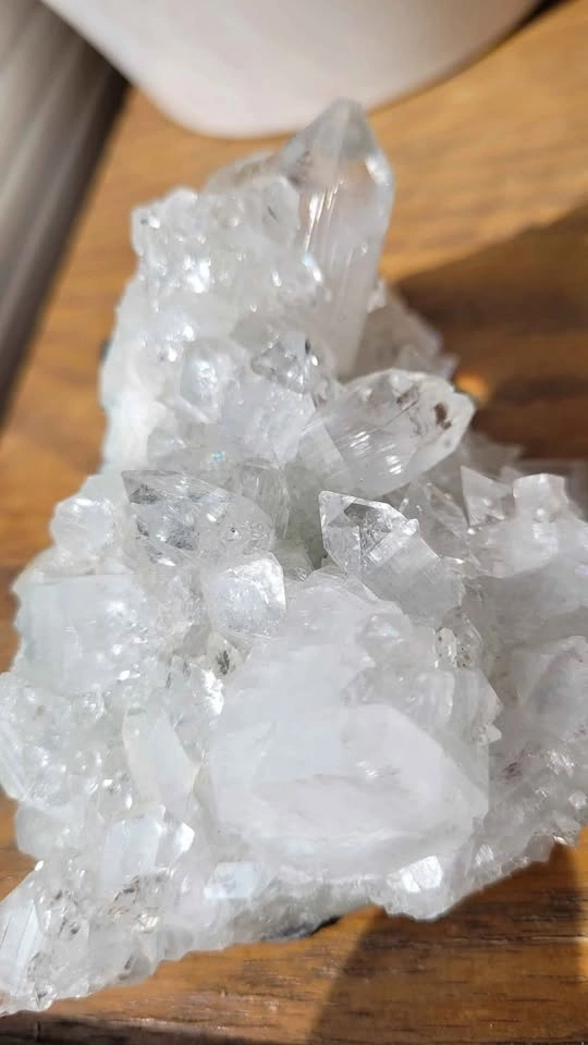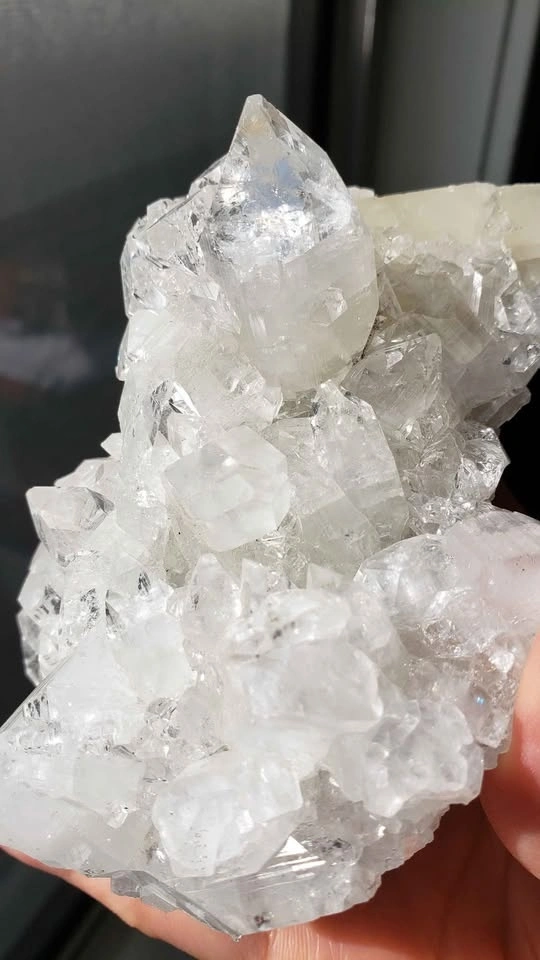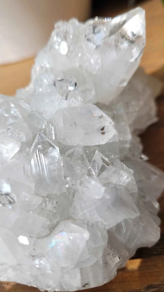 This stunning white diamond apophyllite cluster sparkles with an ethereal brilliance—its translucent, prismatic crystals catching the light in a mesmerizing dance of reflections. 💎🪽