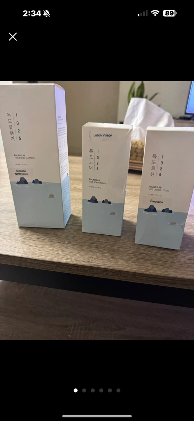 Selling a skincare set from ROUND LAB, the 1025 Dokdo line! This set includes the cleanser, toner, and lotion. The Dokdo line is known for its gentle and effective formulas, perfect for sensitive skin. Get the complete routine in one go!
