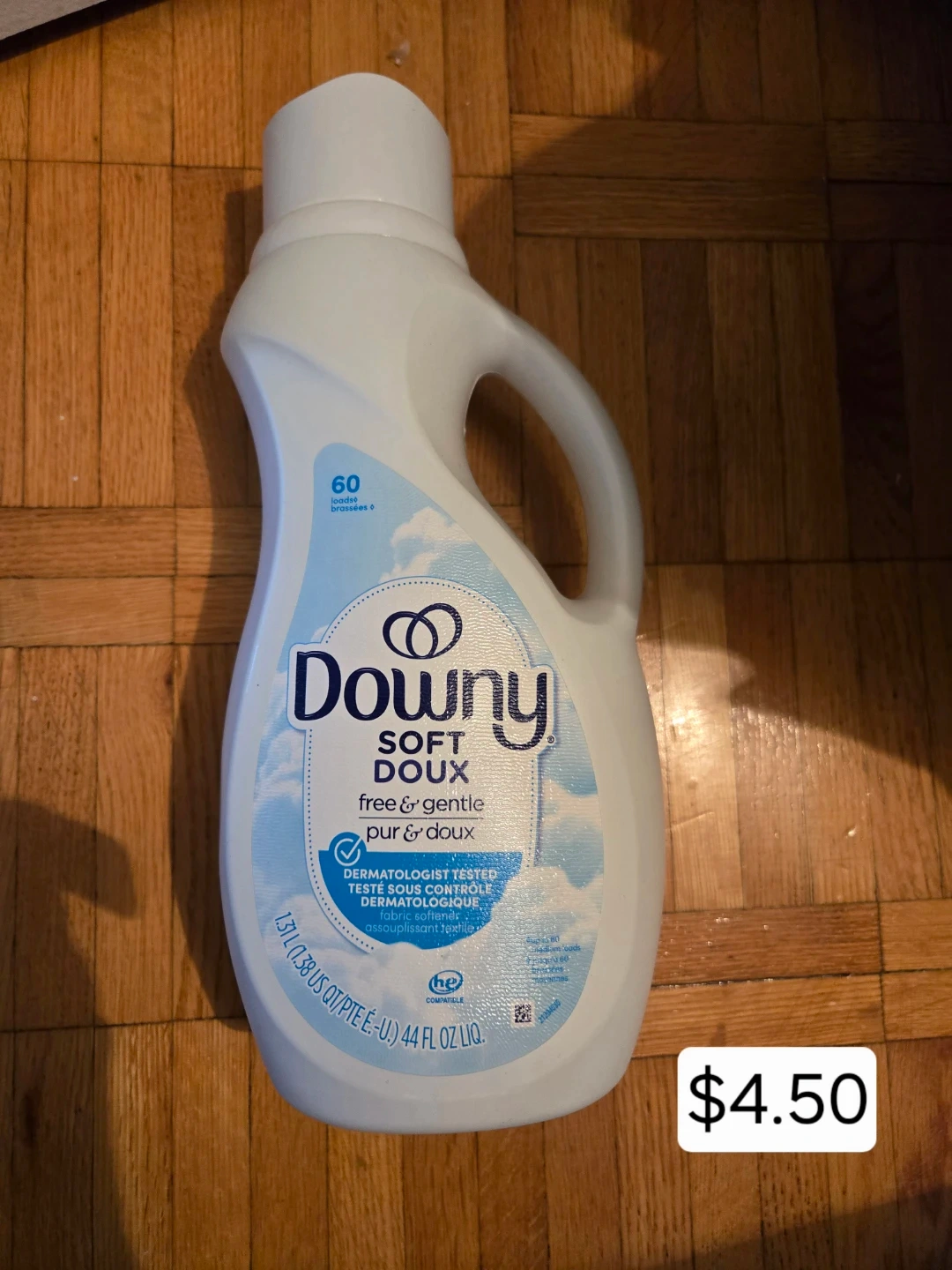 Downy Softique Free & Gentle fabric softener is a dermatologist-tested formula. It contains 60 loads worth of product. The bottle is 1.31L or 44 US fl oz.