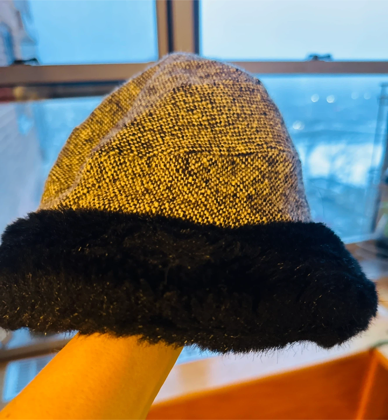 Double sided Black Velvet and Fur Trim Bucket Hat