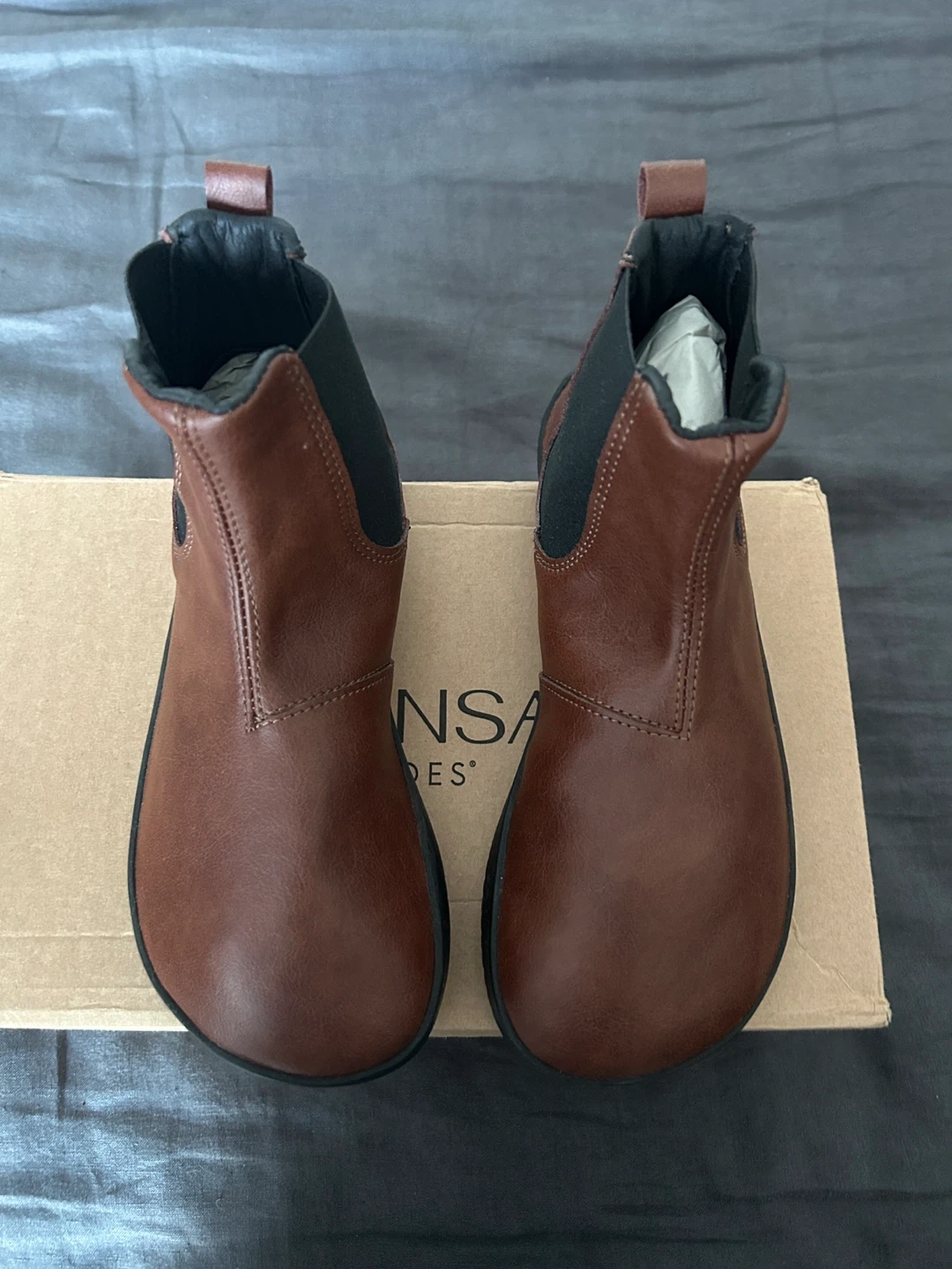 AHINSA SHOES Chelsea boots in a light brown colour. Vegan leather material. Comes with original box and shoe inserts. Size 36 EU. These boots are perfect for everyday wear!