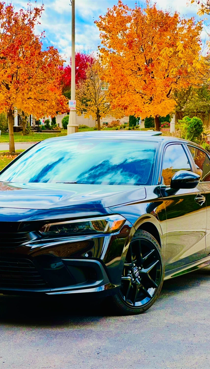 Black 2024 Honda Civic Sport sedan. Comes with alloy wheels and a sport body kit. Low mileage and well-maintained.