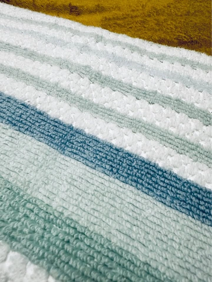 Color: white with soft green and blue stripes
