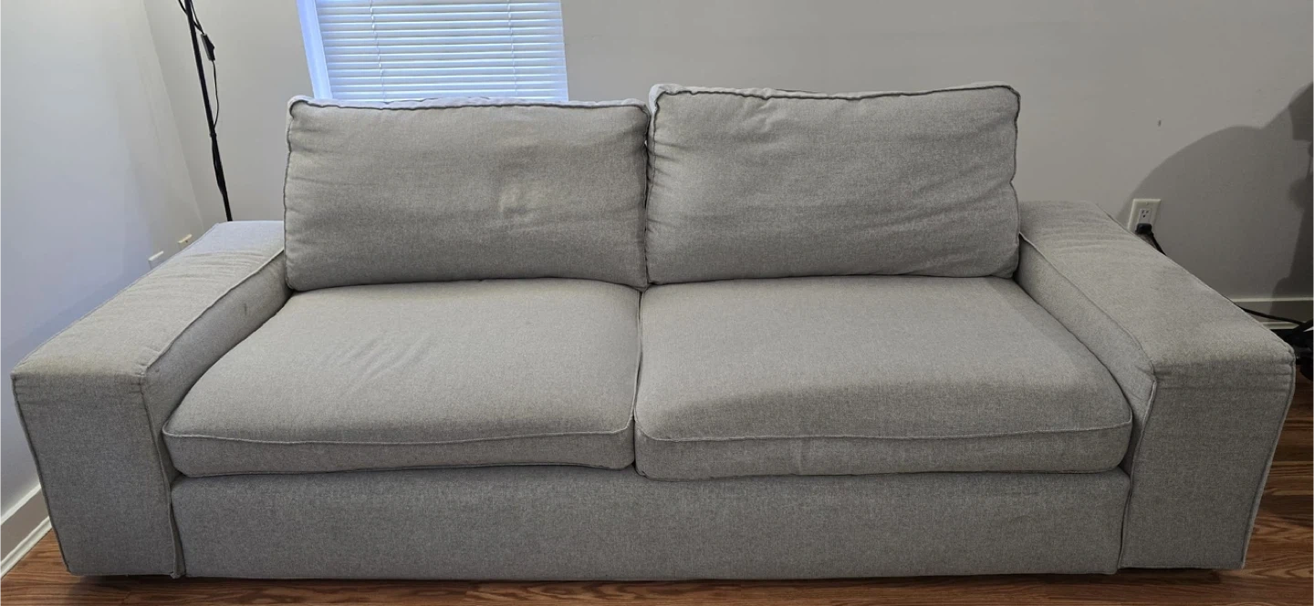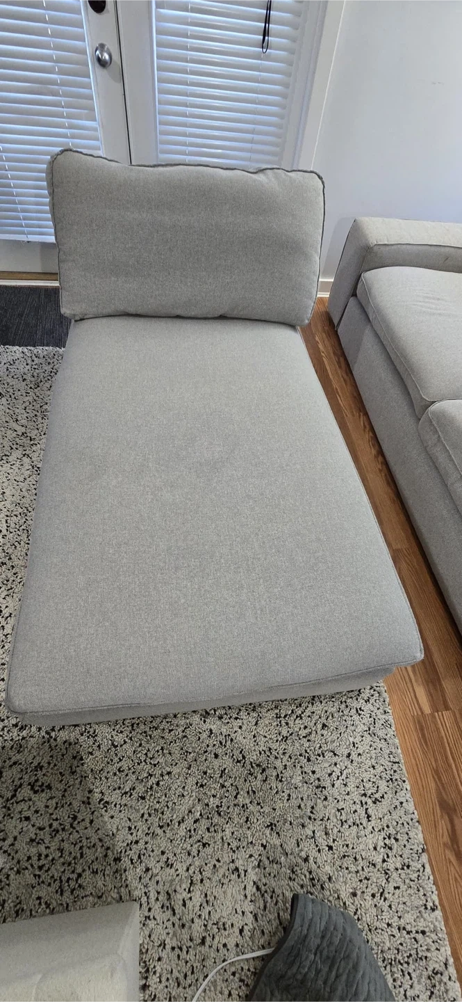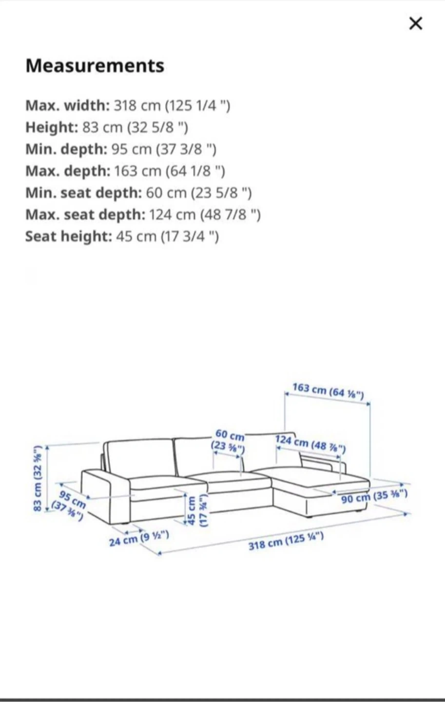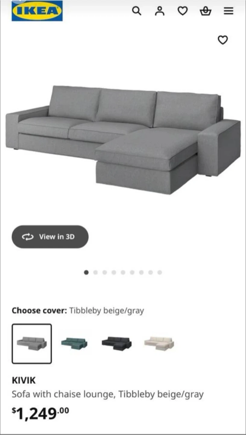 This is an IKEA KIVIK sofa with a chaise lounge in the beige/gray cover. It's a large sectional sofa that offers plenty of seating space. The chaise can be positioned on either side.