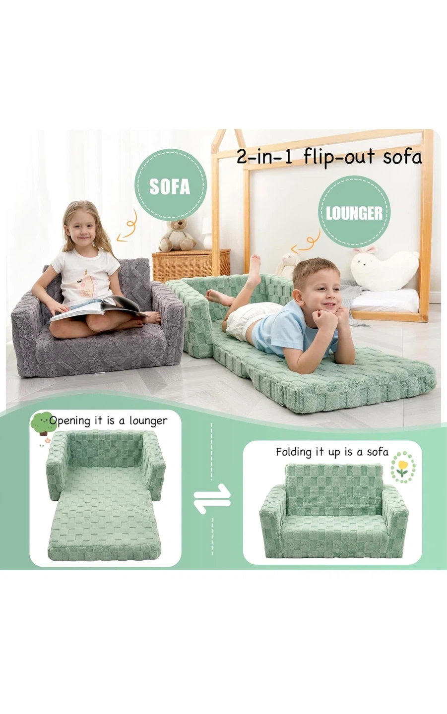 2-in-1 Flip-Out Sofa Lounger for Kids
