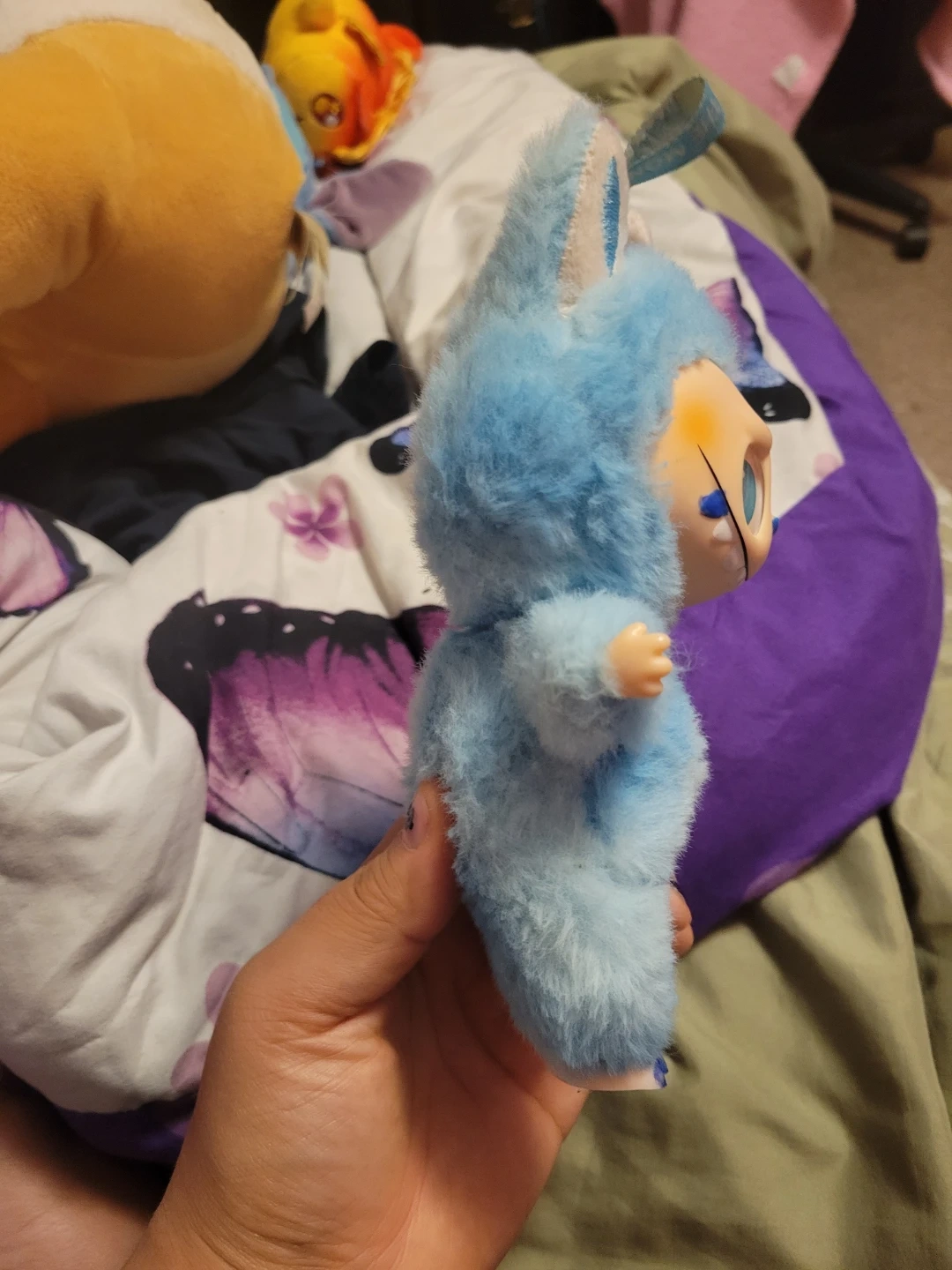 A cute blue labubu plush toy from The Monsters. It's soft and fuzzy with big blue eyes and a happy grin. Great for collectors or as a fun decoration! Never used just opened but I really want 100$ but I'm ok with 50