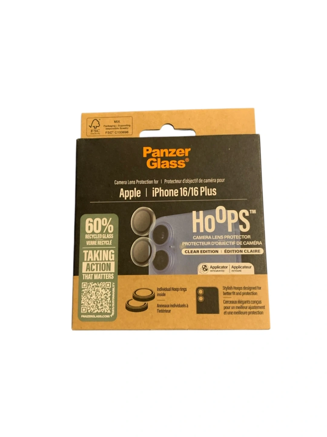 Protect your phone’s camera with the PanzerGlass™ Hoops™ Camera Lens Protector Clear Edition, designed specifically for the Apple iPhone 16 and Apple iPhone 16 Plus.