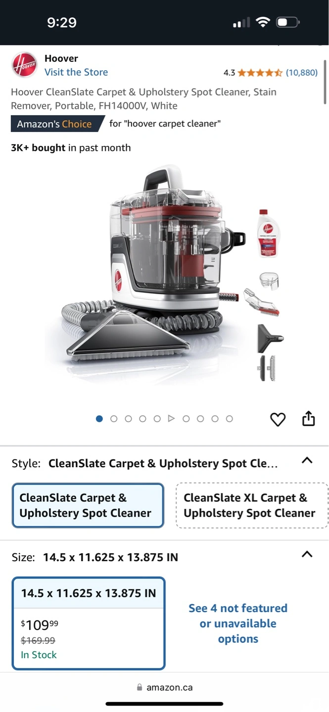 Buy & SellHoover CleanSlate Carpet & Upholstery Spot CleanerHoover CleanSlate Carpet & Upholstery Spot Cleaner$50Portable spot cleaner, white. CleanSlate model. Includes hose.ConditionLike newWHERE TO MEETChestermereView MapSELLERNavWestmere251 review1 chats·0 favorites·20 viewsSEND CHAT TO SELLERHi Nav! I’m interested in your listing.Hi Nav! I’m interested in your listing.Get the Karrot app to chatSign In to chat