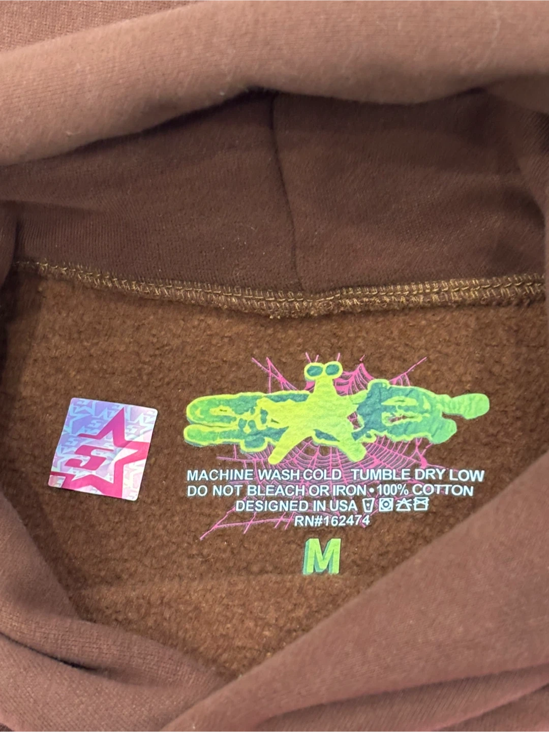 Sp5der Brown Hoodie Spiderweb Graphic Size M