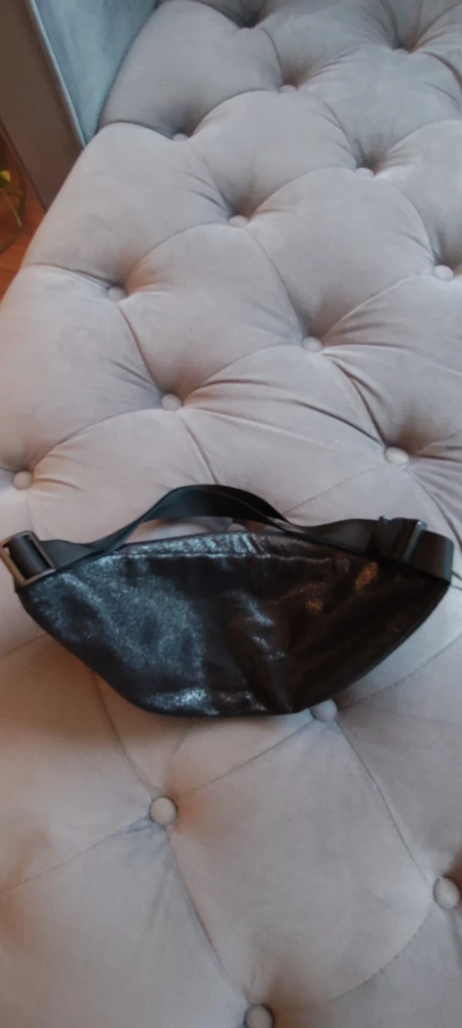 This black fanny pack is made of textured faux leather. It has a zippered main compartment and an adjustable strap. It's great for keeping your essentials handy while on the go!