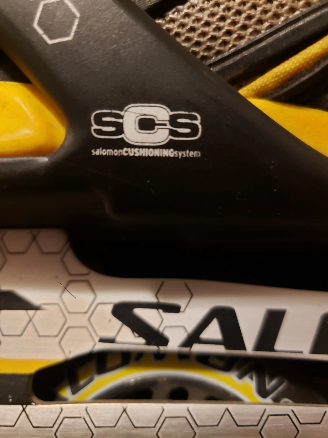 These Salomon inline skates are in a men's size 42 2/3 (UK 8.5, US 9). They feature a 295 mm frame with 120 mm wheels. The Salomon cushioning system is integrated for comfort. Great for recreational skating!