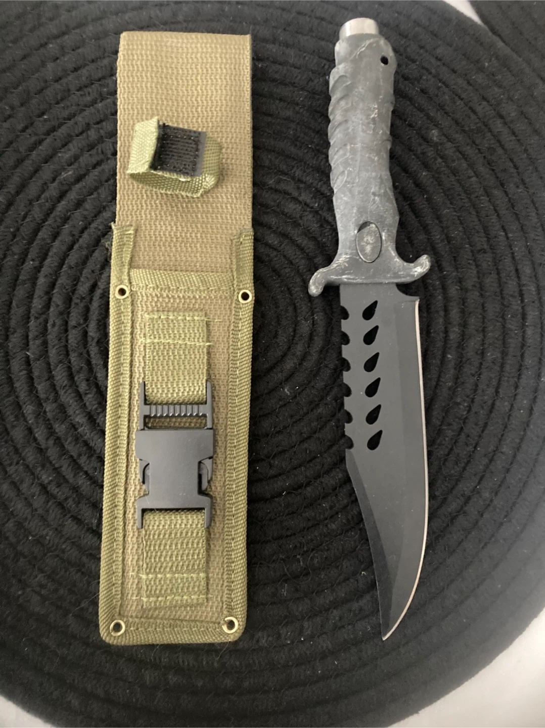 This is a brand new h u n t I n g k n I f e with a black blade and a green handle. It comes with a matching green sheath. It would be perfect for h u n t I n g, camping, or other outdoor activities. Please note, since the ad is still posted, it's available for purchase! $40 firm. Cash only . No delivery . Must be over the age of 25.