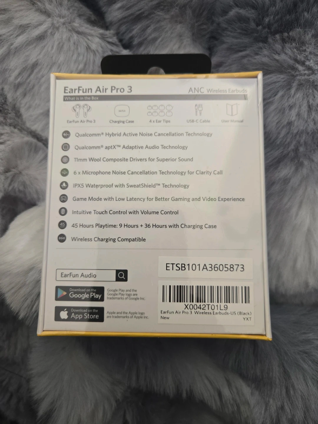 EarFun Air Pro 3 ANC Wireless Earbuds. Bluetooth 5.3 and Qualcomm aptX™ Adaptive Audio. IPX5 waterproof with SweatShield™ Technology. 45 Hours Playtime: 9 Hours + 36 Hours with Charging Case.