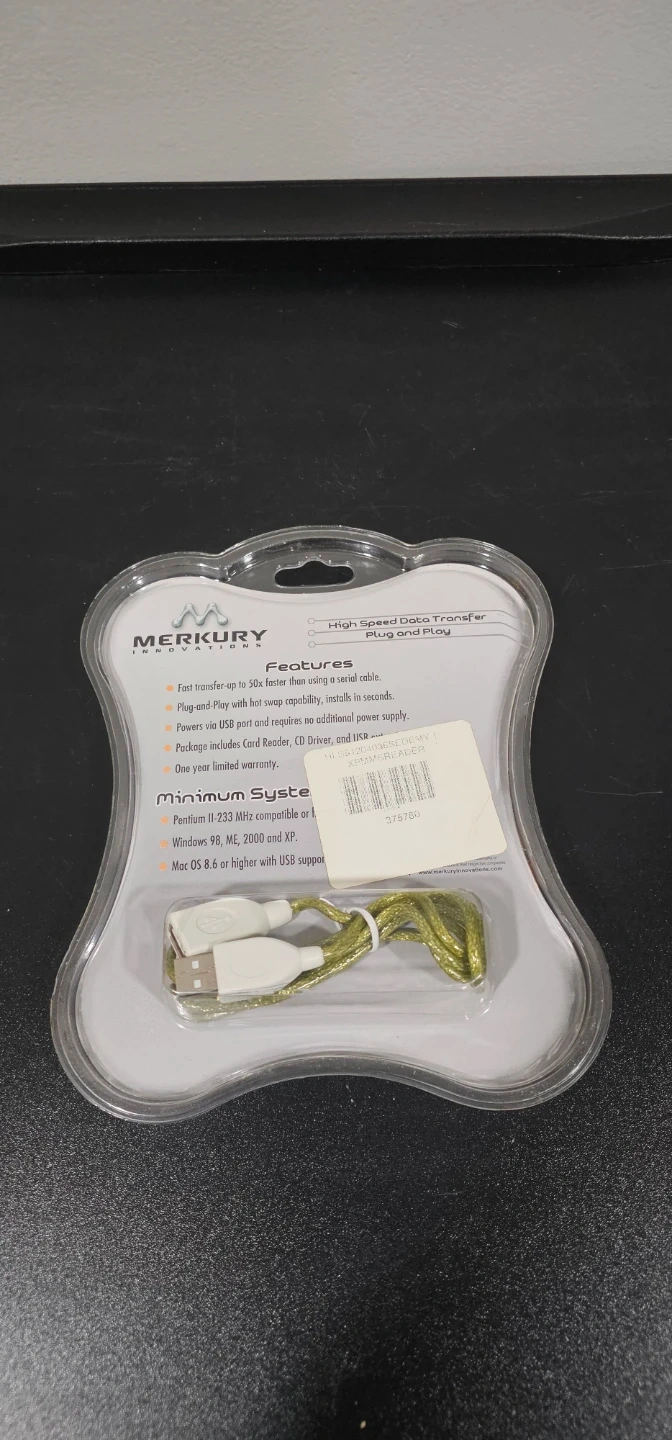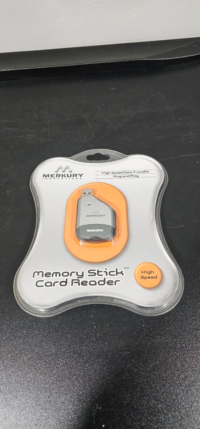 Selling a brand new Merkury Innovations Memory Stick Card Reader! It's still in its original packaging and has never been used. This card reader offers high-speed data transfer and is plug-and-play, installing in seconds. It powers via a USB port and requires no external power supply. Included is a card reader, CD driver, and USB cable. It also comes with a one-year limited warranty.