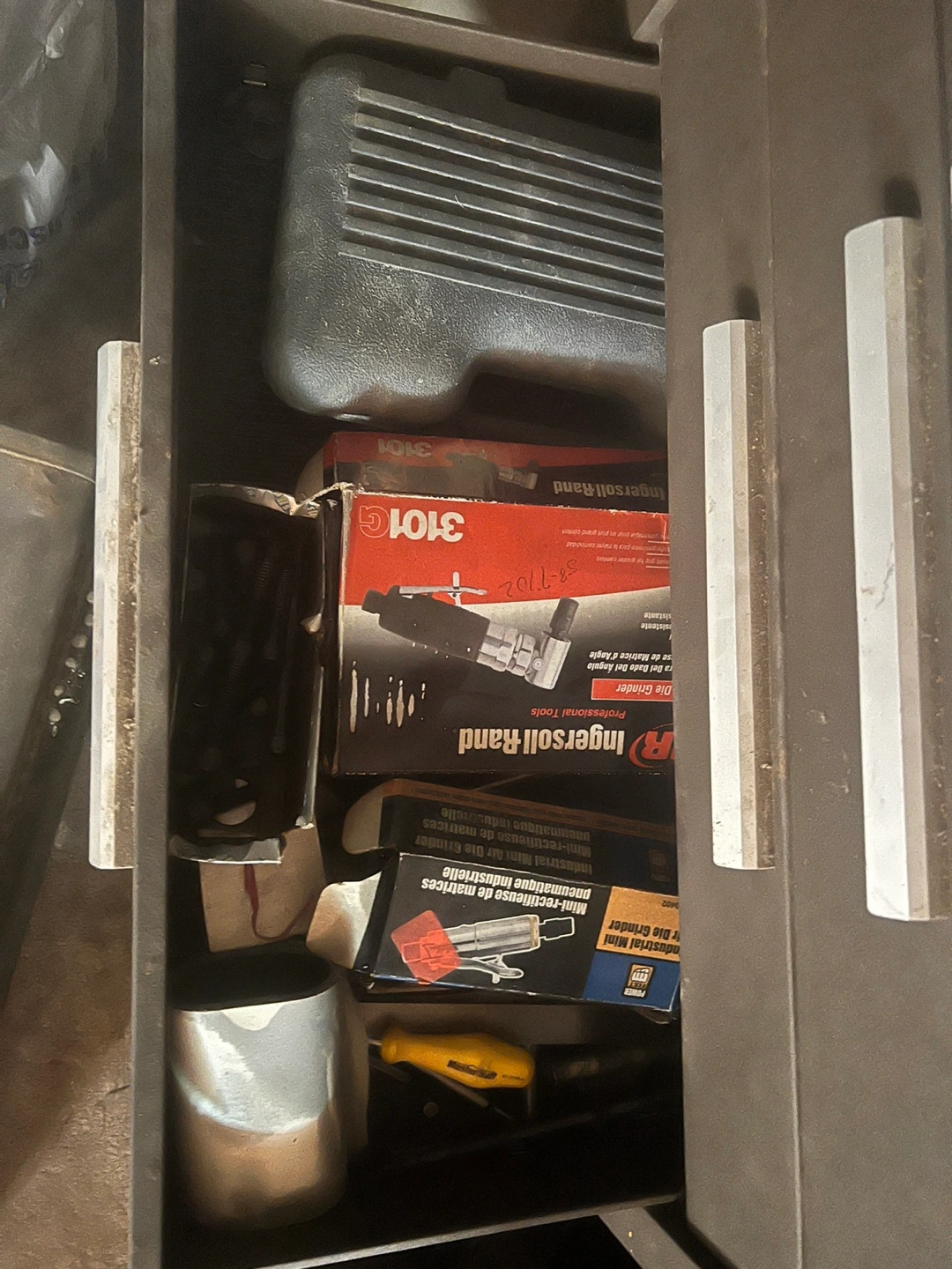 A tool chest filled with various tools. Some drawers filled with multiple tools. Tools include pliers, screwdrivers, measuring tools, grinders, and other equipment. Enjoy finding the right tool for any job.