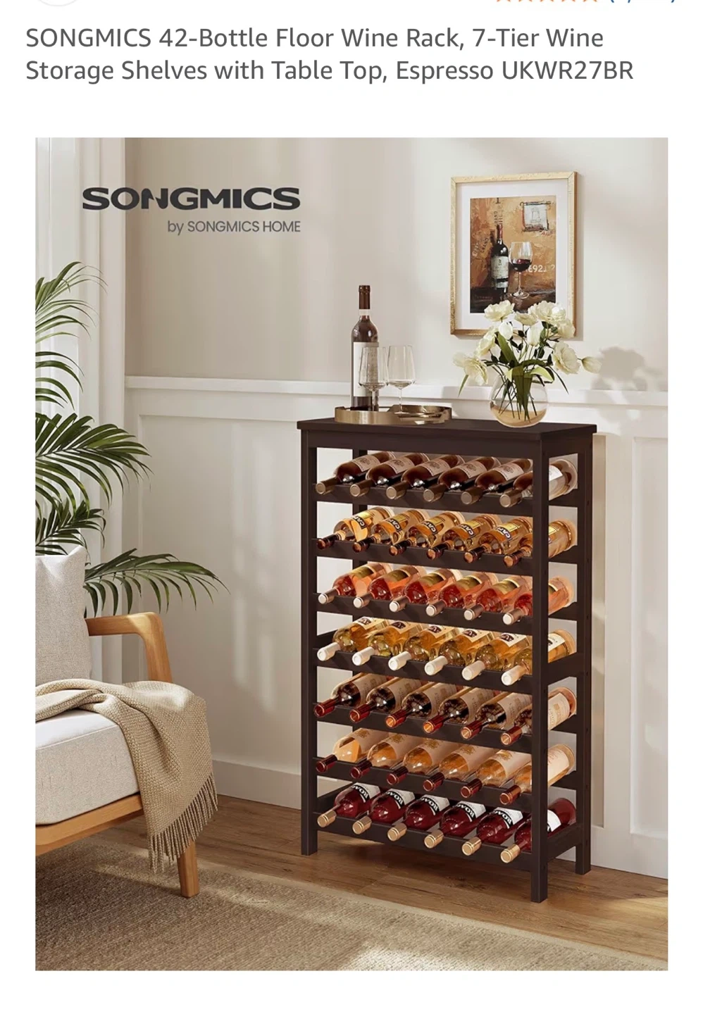 SONGMICS 42-Bottle Floor Wine Rack - Espresso