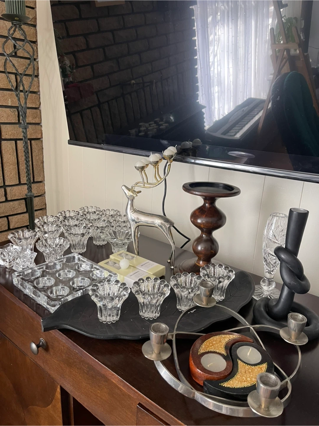 Add a touch of sparkle to your home with this collection of various vintage crystal candle holders. This set includes an assortment of candle holders that are in good condition, perfect for creating a cozy atmosphere in any room.