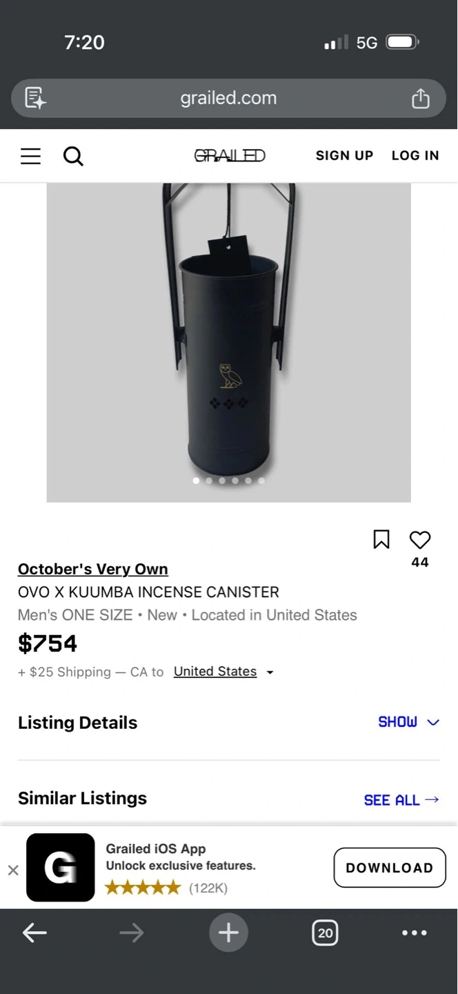 Buy & SellOVO X KUUMBA Incense CanisterOVO X KUUMBA Incense Canister$197This is the OVO X KUUMBA Incense Canister. It's designed for burning incense. Made in Japan.ConditionNewWHERE TO MEETCheck LocationView MapSELLERKt3jvRichmond Hill E100 reviews0 chats·0 favorites·2 viewsSEND CHAT TO SELLERHi Kt3jv! I’m interested in your listing.Hi Kt3jv! I’m interested in your listing.Get the Karrot app to chatSign In to chat