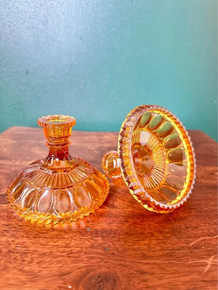 These candlestick holders are in excellent vintage condition. No chips or damage to note. Candlesticks are also for sale (see other listings), but please note that they do not safely fit these particular candlestick holders. 4.25”W x 3.5”H. Holder Capacity: 0.75”W.