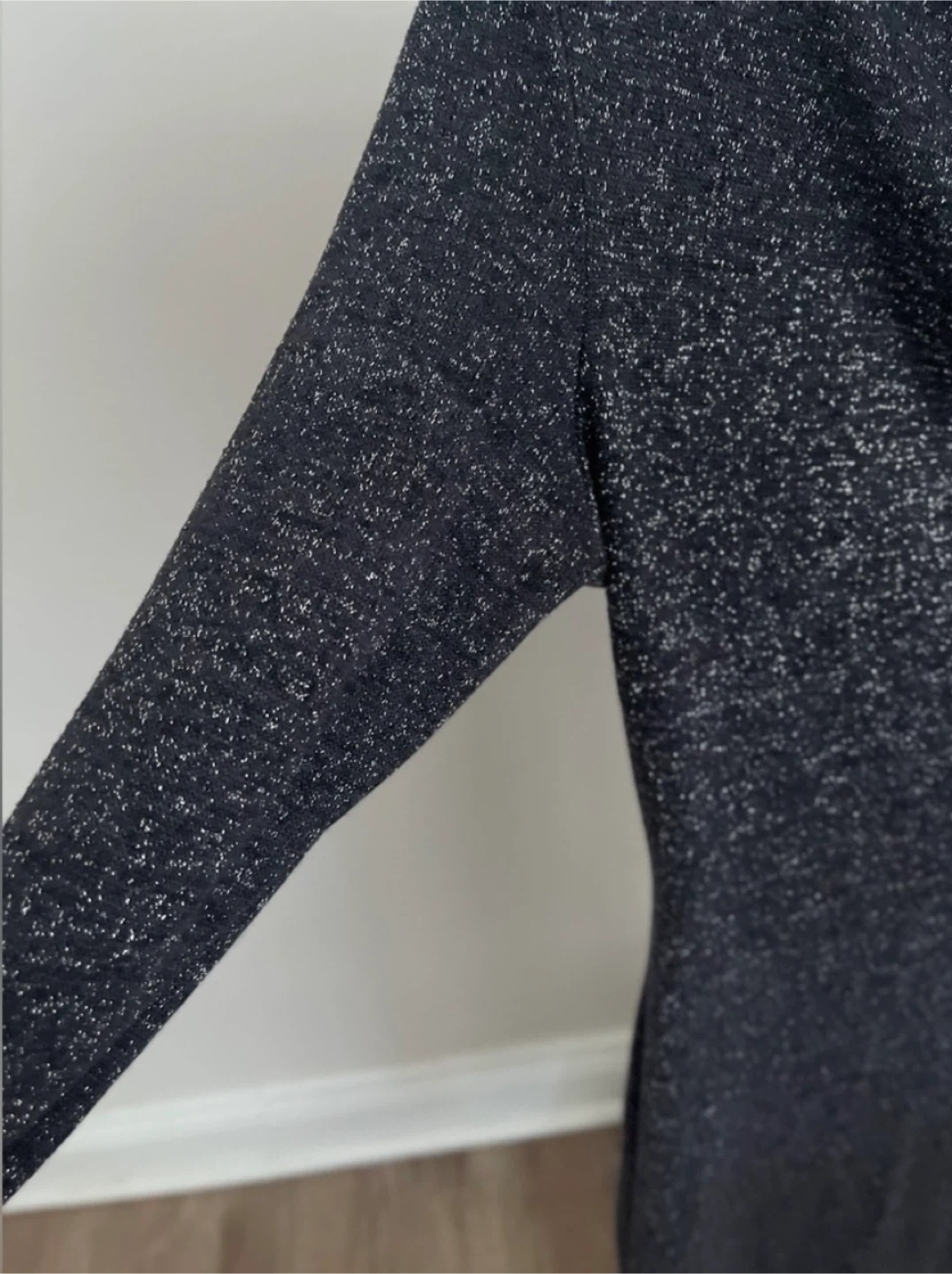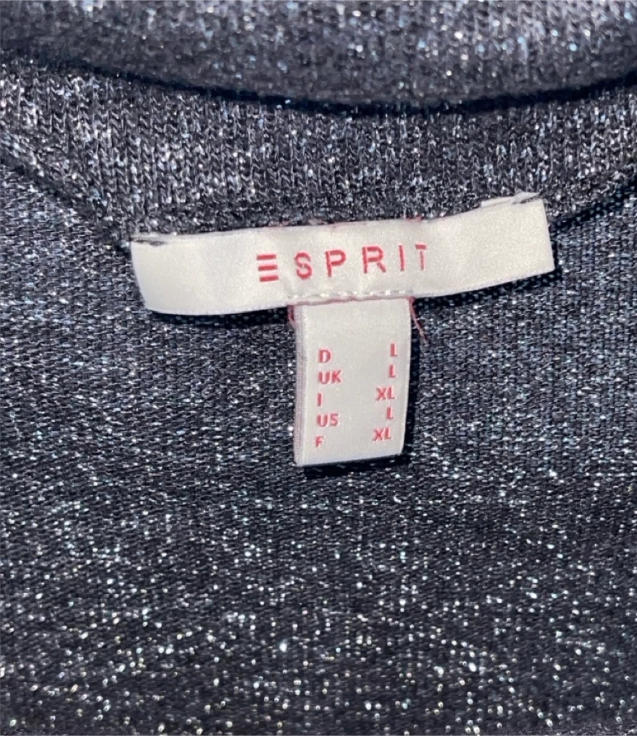 Worn a few times, in great condition. Size US L, fits up to size XL. Chic long sleeve dress by Esprit. Charcoal color with a shimmering/speckled pattern. Length is 37 inches and pit to pit measures 20.5 inches.