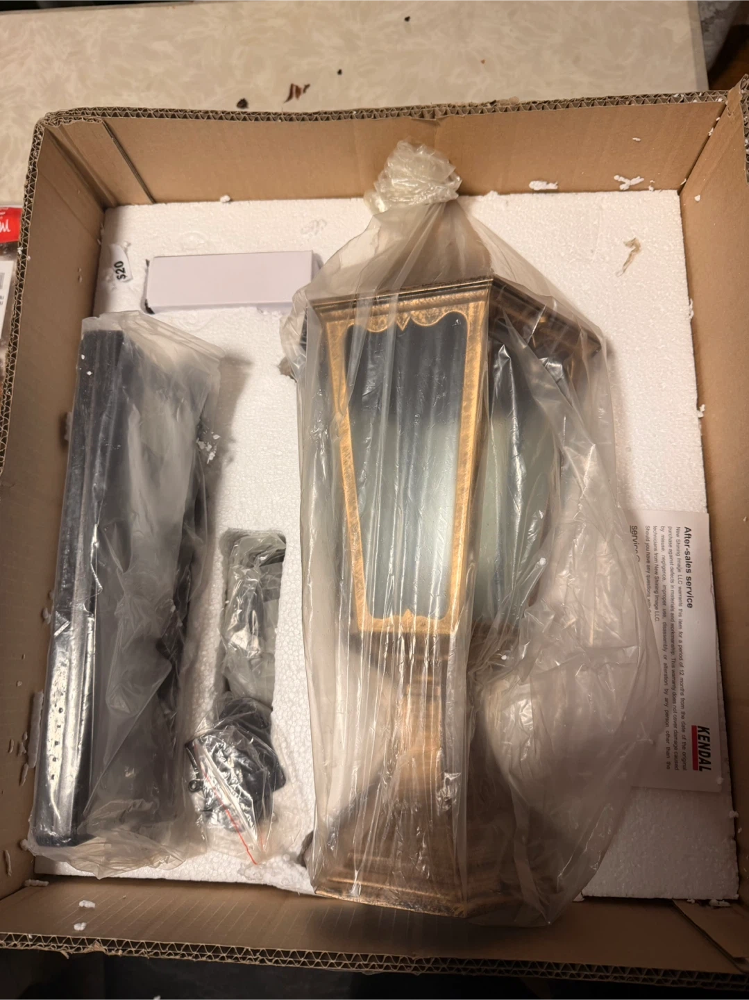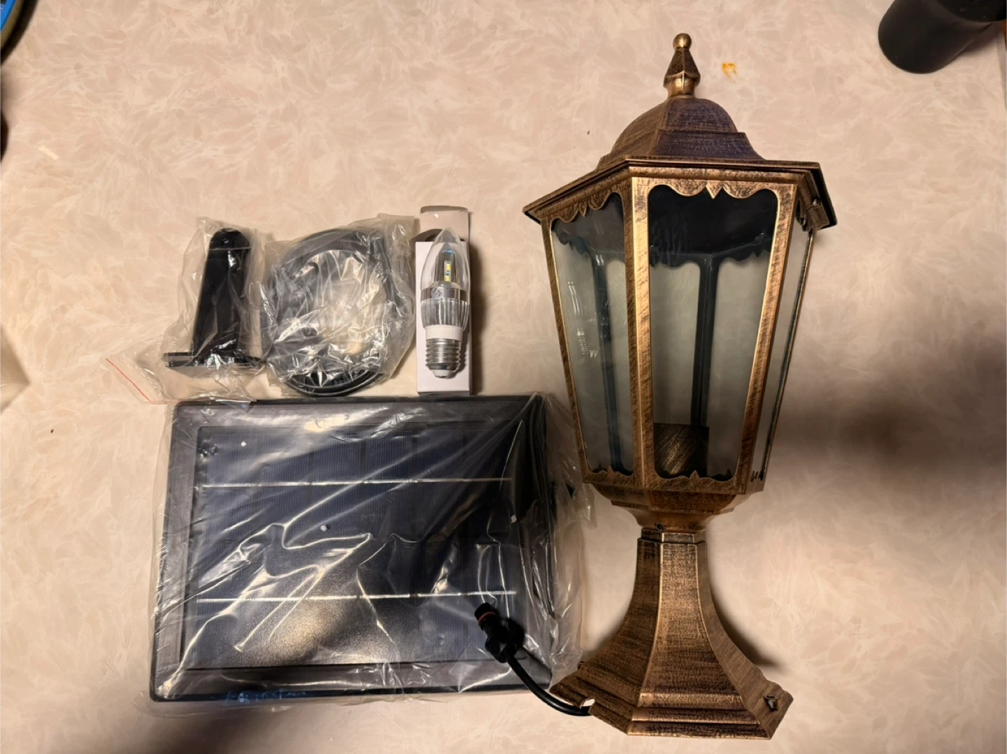 Brand new Kendal Solar Wall Lamp in bronze. It features a polycrystalline silicon solar panel and a high-brightness LED light source. This lamp is designed for outdoor use, providing illumination after dark. Comes with a on/off switch as well