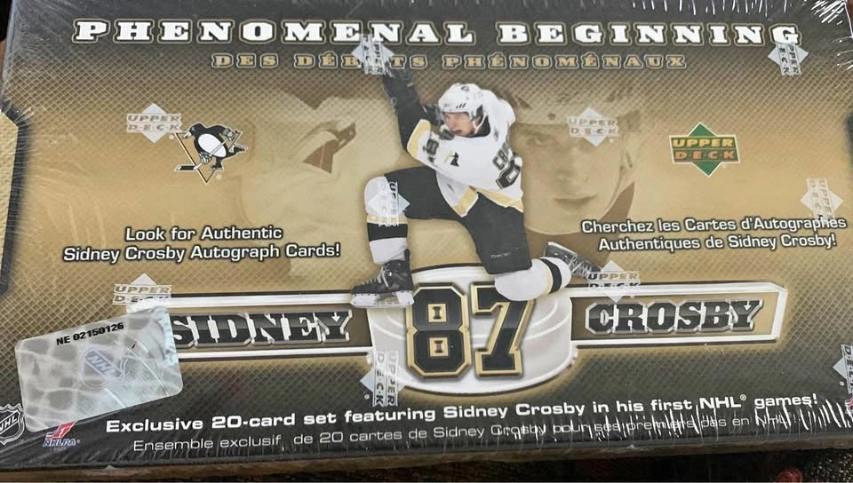 I have 15 of these 2005-06 UD Sidney Crosby Phenomenal Beginnings sealed sets. Chance at a rookie auto in these. Sid’s value is on the rise! See my other listing for more sealed sets and boxes in hockey, baseball and football. Sold out of basketball!