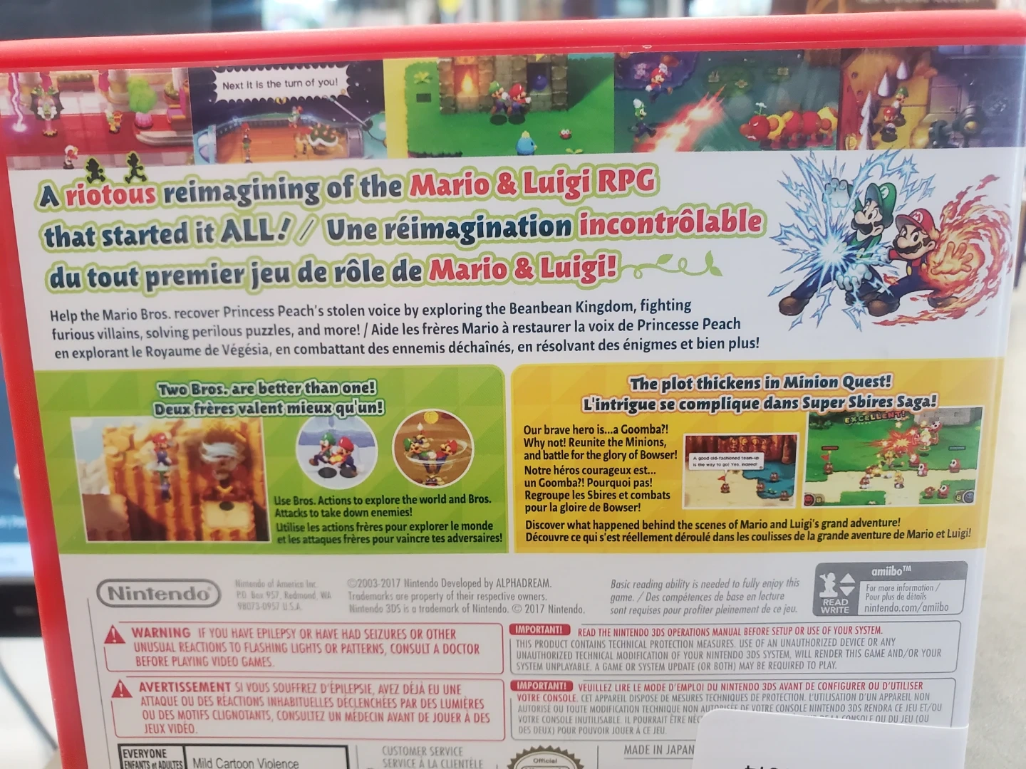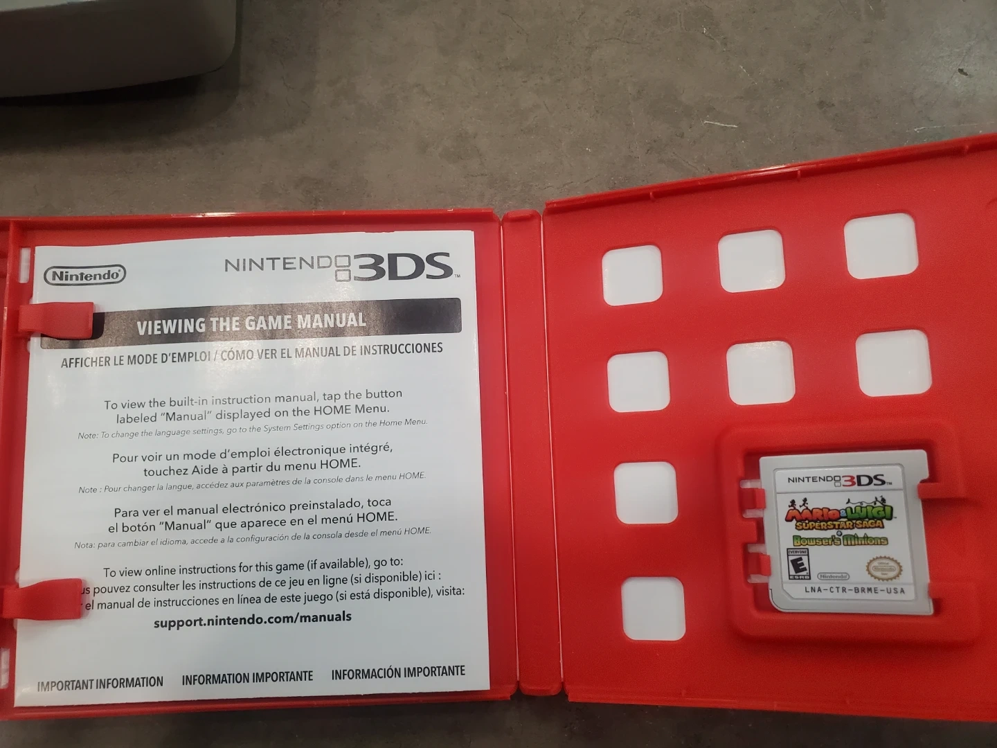 This is the Mario & Luigi Superstar Saga + Bowser's Minions game for the Nintendo 3DS. It's a role-playing game featuring Mario and Luigi. The game includes the game cartridge and case.