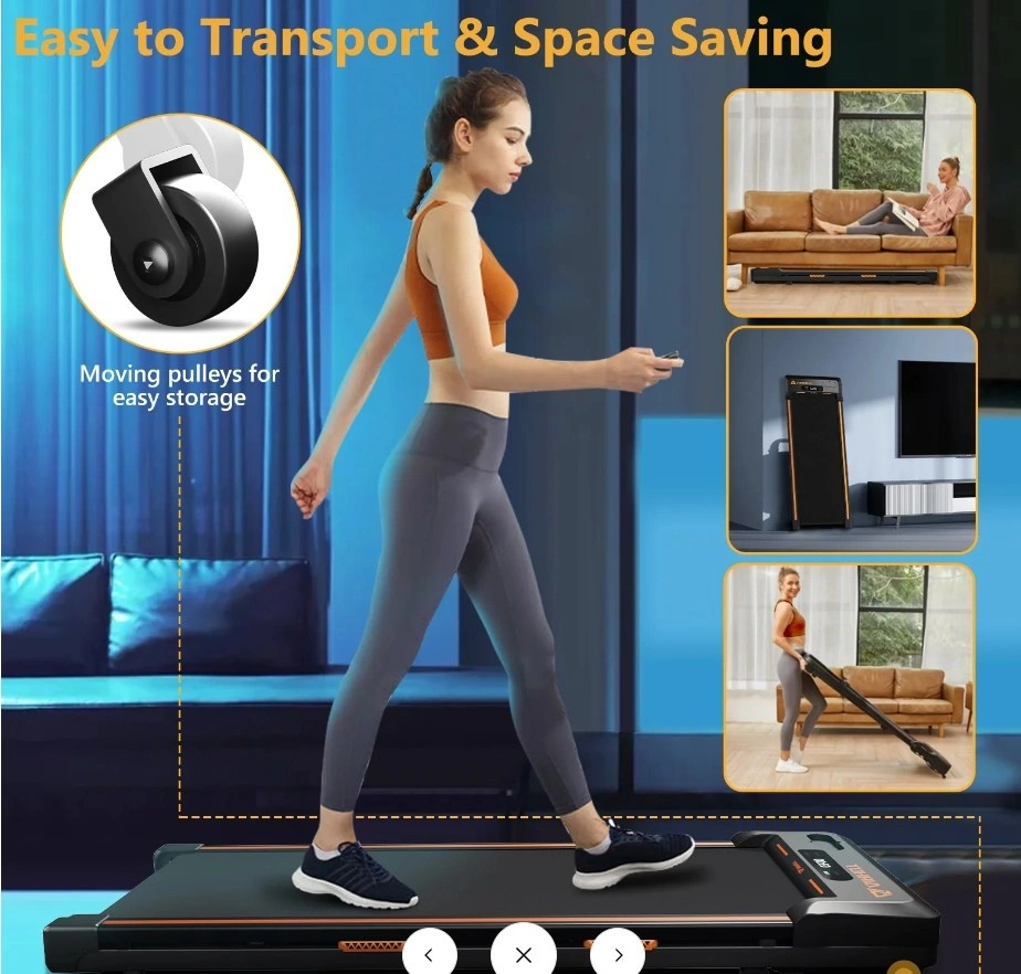 Save Space & Compact Design - Measuring just 4.5 inches thick, this under desk treadmill is compact and easy to store. It comes with built-in wheels, allowing you to effortlessly move and place it under your desk, bed, or sofa. Perfect for those with limited space, this treadmill seamlessly fits into any environment without compromising on functionality.