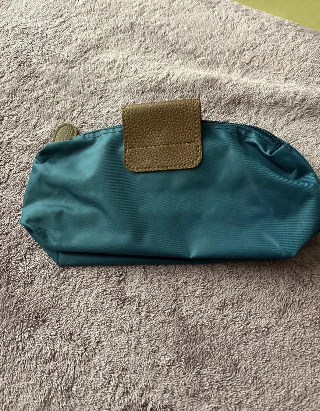 Teal IHG Hotels & Resorts toiletry bag. It's made of nylon with faux leather accents. Zipper closure for secure storage.