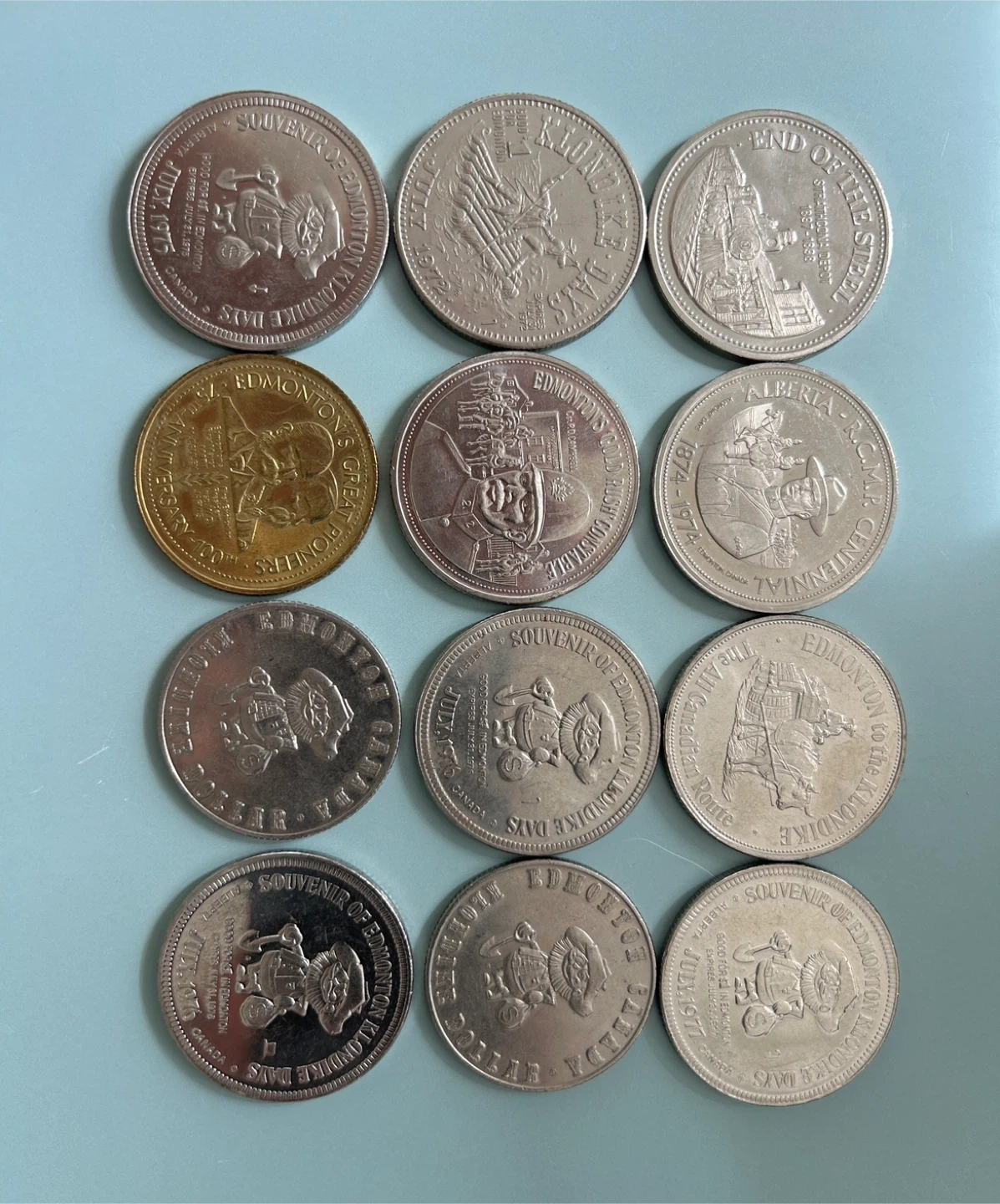 Collection of 12 Edmonton Klondike Days Souvenir Coins