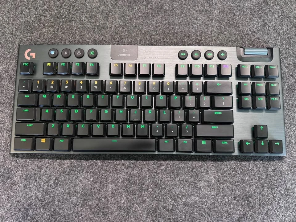 Logitech G915 X Lightspeed TKL Wireless Mechanical Keyboard with brown mechanical switches. Like-new condition. Lightspeed wireless for low-latency gaming. Works with PC, Mac, and Bluetooth devices. Fully customizable RGB lighting. Excellent balance of typing feel and gaming performance. Clean, fully functional, no issues. Includes keyboard and OEM USB dongle. Cash only. Local pickup.