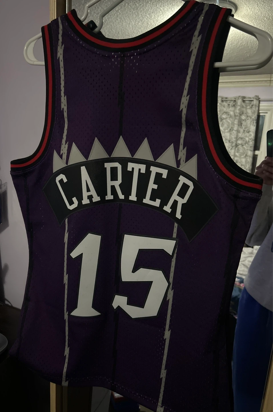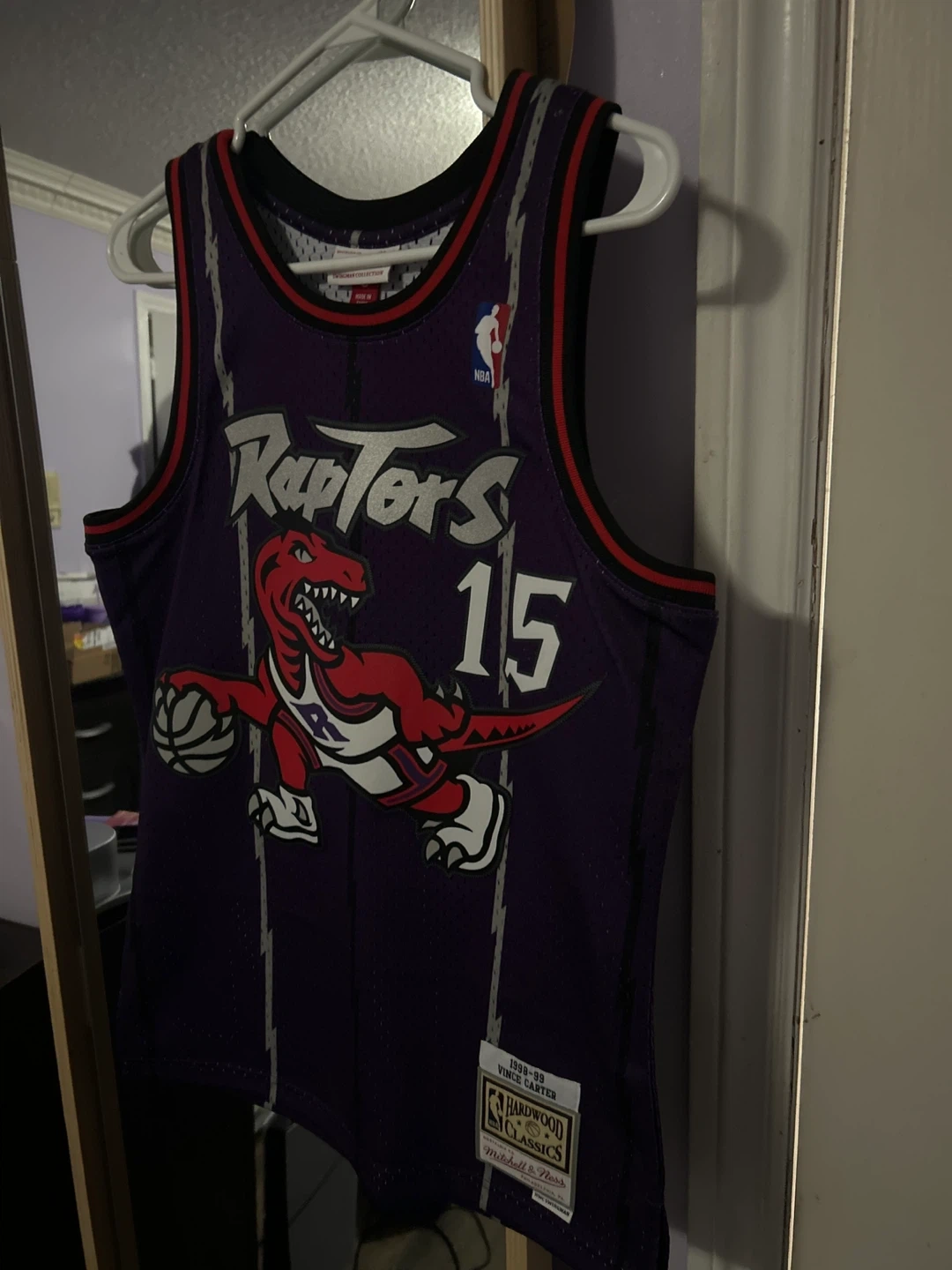 New Mitchell & Ness Hardwood Classics jersey for Vince Carter. Never worn. Features the Toronto Raptors Dino logo and his number 15. Fits size small mens size large kids. This jersey is from the 1998-99 season.
