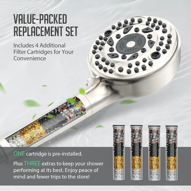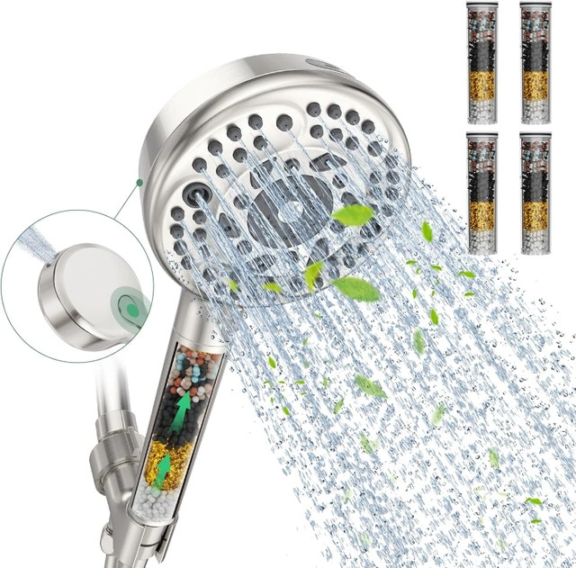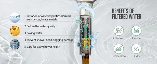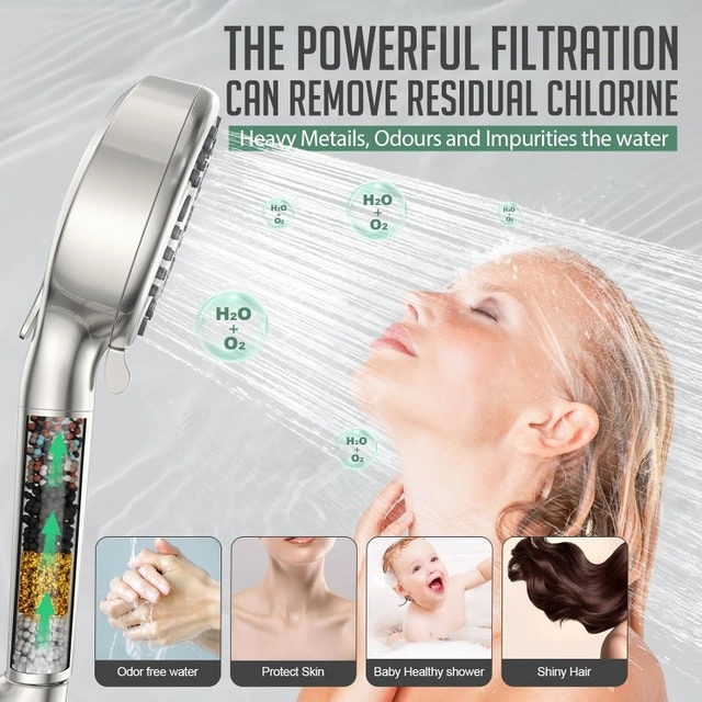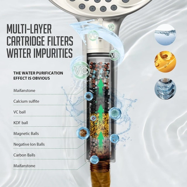 - Built-in shower filter: Contains 9 kinds of filter balls such as KDF-55, Calcium Sulfite, and so on. Remove residual chlorine, calcium, magnesium and other heavy metals, minerals, rust, sand and other sediments from the water step by step through the filtration media, infuse vitamin C as well as other beneficial trace elements, soften the water, revitalize the water, reduce dry and itchy skin, no hair loss, no dryness