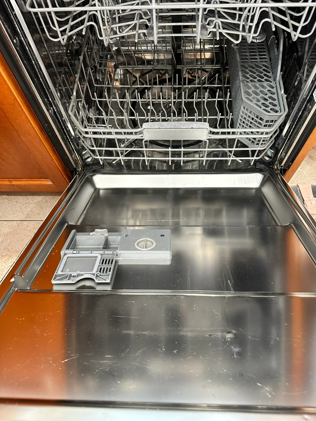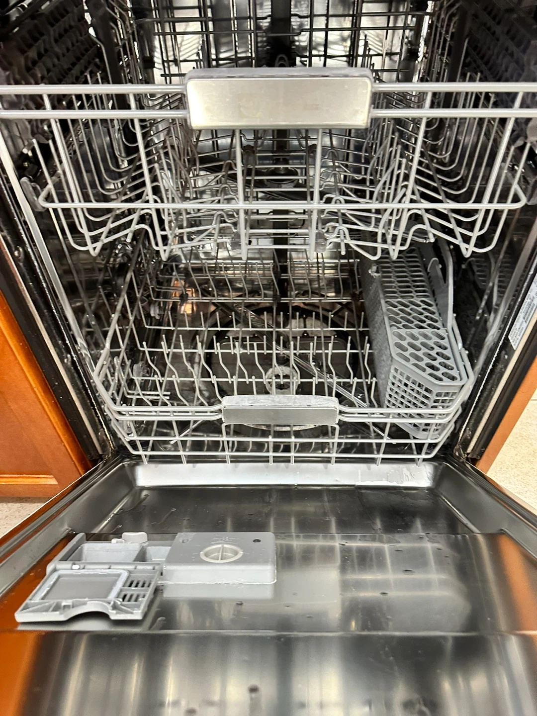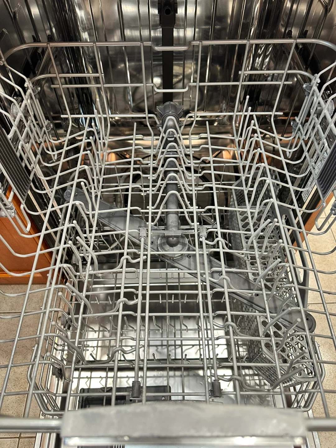 This is an Electrolux dishwasher with a stainless steel exterior and interior. It has multiple wash cycles including auto, normal, eco, sanitize, quick, rinse, air dry, and delay. It's a reliable appliance for keeping your dishes sparkling clean! In good working condition and very quiet.