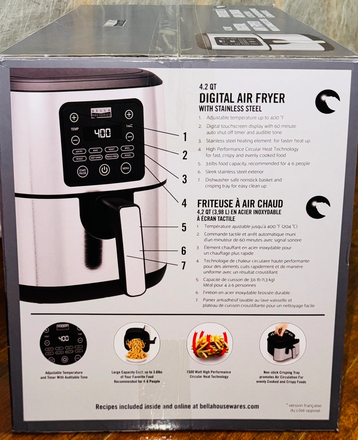 Bella Pro Series 4.2 QT Digital Air Fryer with Stainless Steel