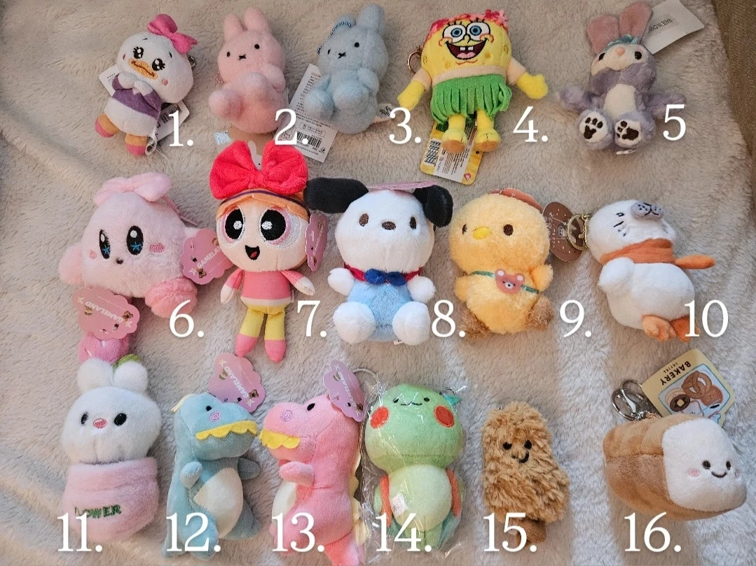 I have a selection of adorable plush keychains for sale! They're all in great condition (new) and ready to add some charm to your keys or bag.