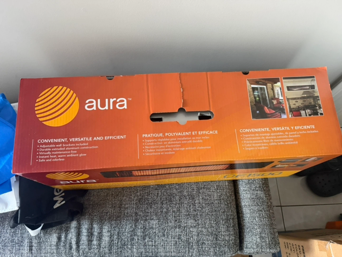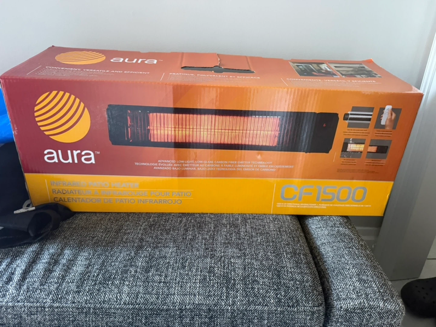 This Aura CF1500 patio heater offers convenient, versatile, and efficient heating. It features advanced low-light, low-glare carbon fibre emitter technology. Instant heat, warm ambient glow, safe and odourless operation!
