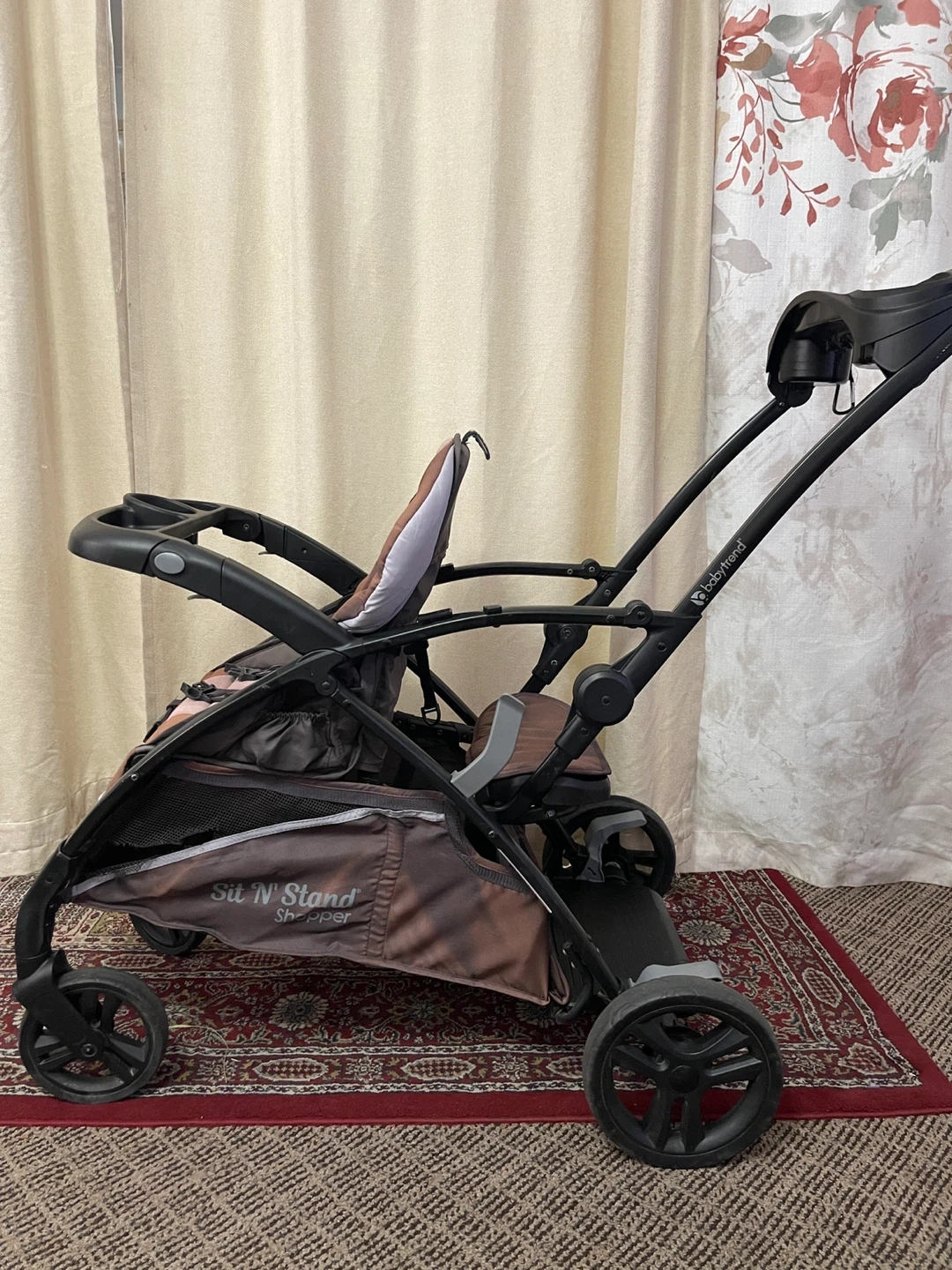 Selling a Baby Trend Sit N' Stand Shopper stroller. It's in good condition and ready for a new family! This stroller is perfect for families with a toddler and a baby, offering the flexibility of sitting or standing options for your older child.