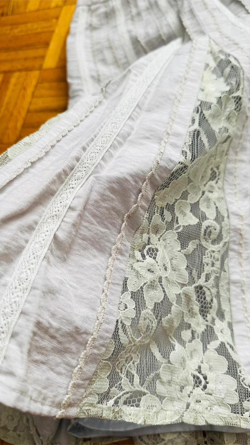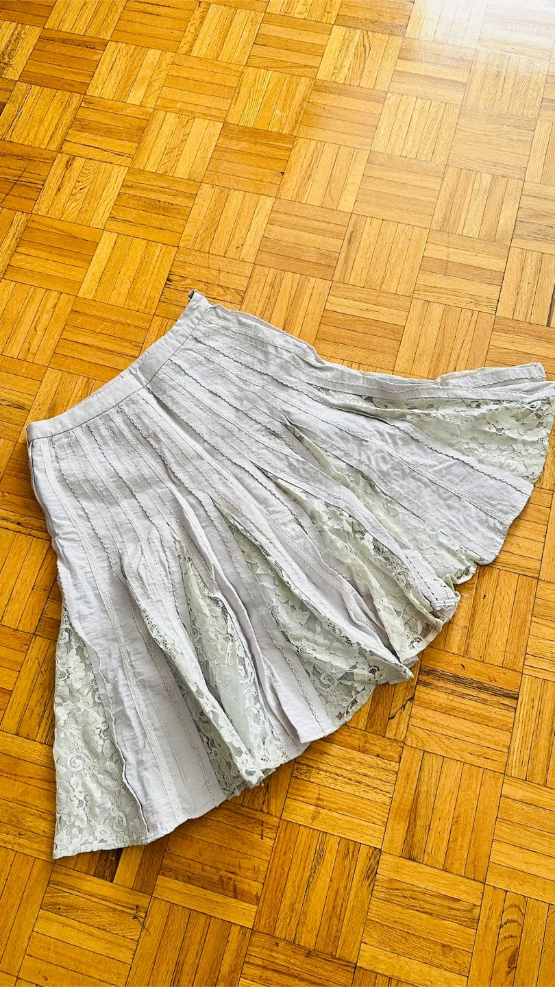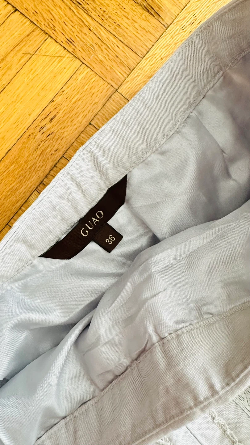 This GUIAO skirt features a pleated design with lace accents. Size 36 is indicated on the label. It's a midi length.