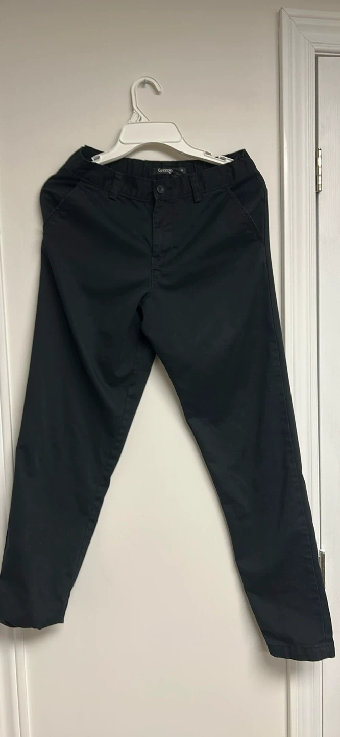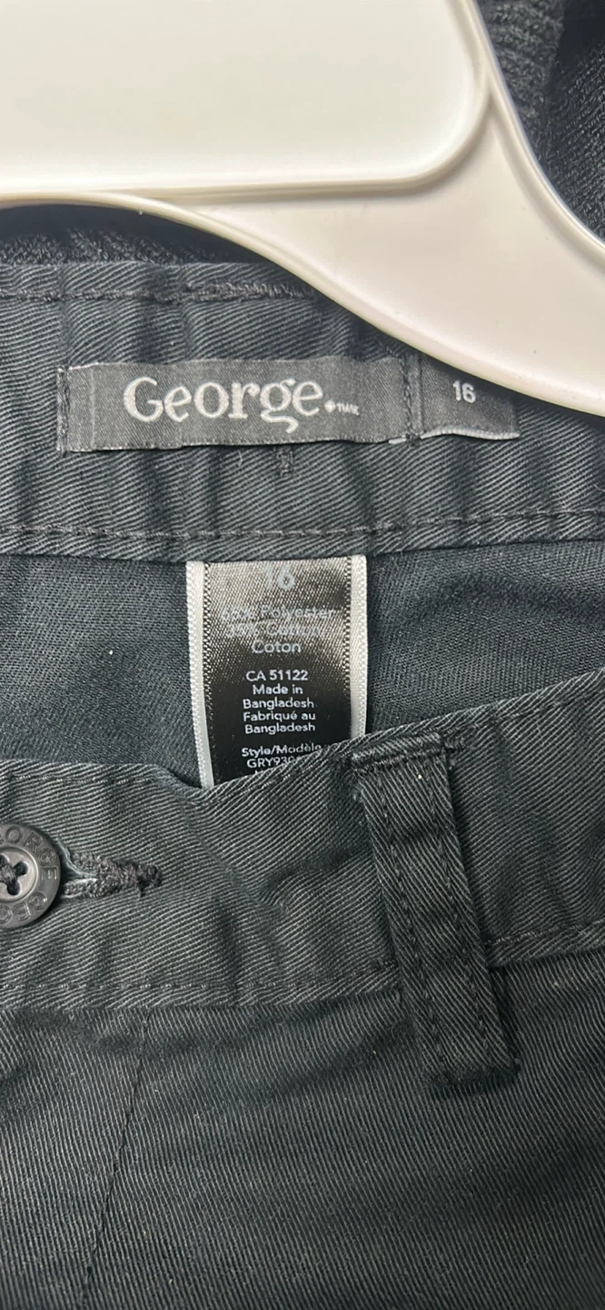 Black twill pants by George. Size 16. These pants are made with a comfortable blend of cotton and polyester. They feature a classic button and zip fly closure.