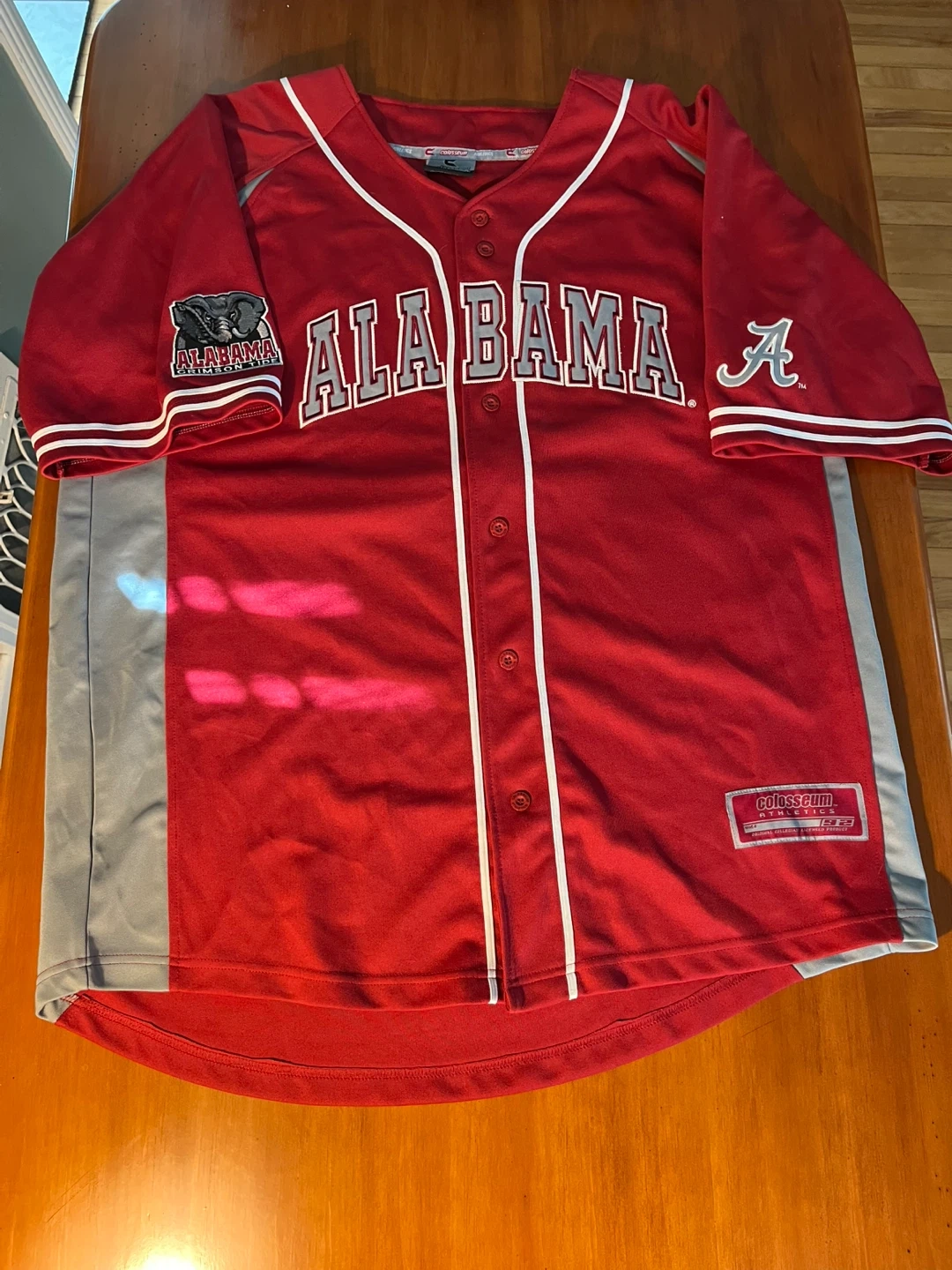 Selling a Colosseum Athletics Alabama Crimson Tide baseball jersey! It's in great shape and ready for a new fan. It's an XL size, perfect for showing your team spirit!