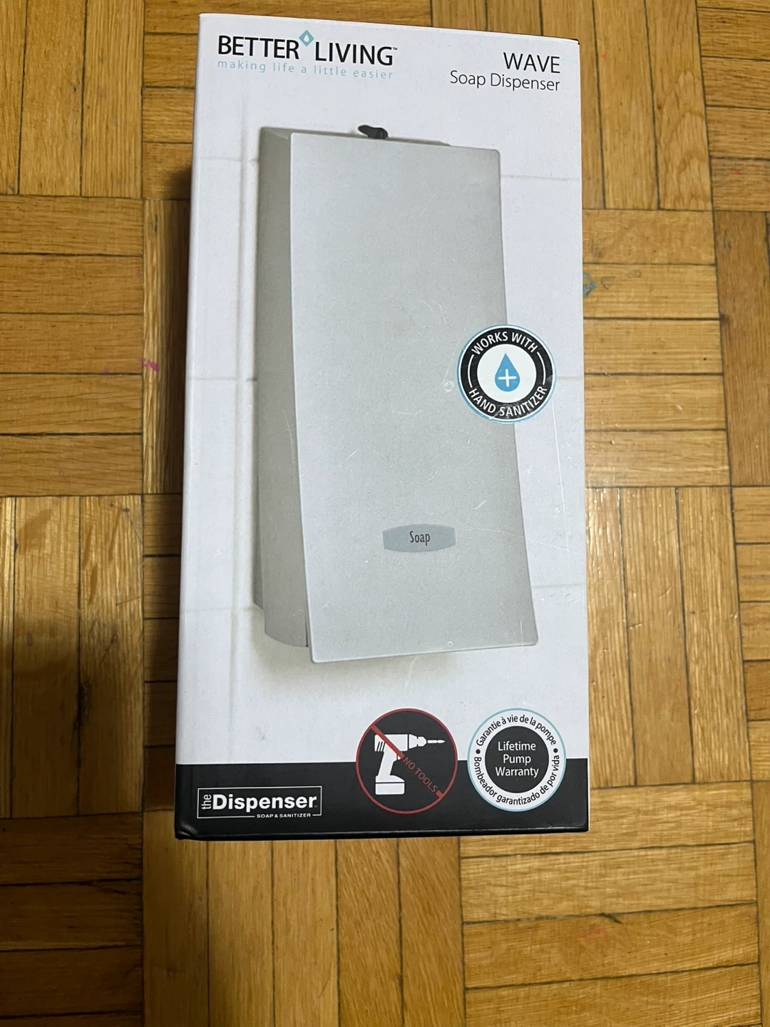 This Better Living WAVE soap dispenser offers convenient single-handed precision dispensing. It holds 14.4 oz (425 ml) of your favourite liquid. It's easy to mount anywhere with waterproof double-sided tape and silicone adhesive.smoke free and pet free