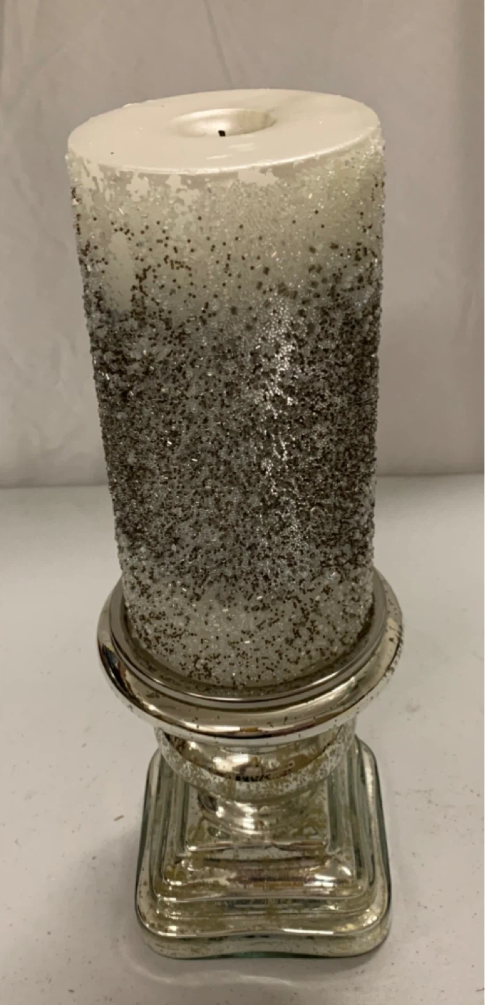 Comes with the large beaded glitter candle included, with light use (see the photo).
