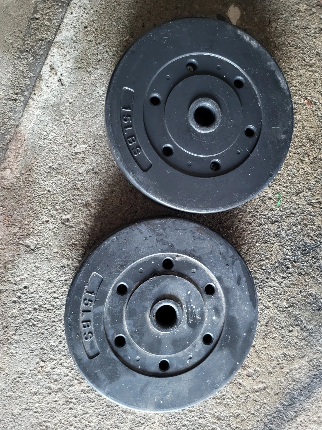 Buy & SellSet of 4 Weight Plates (15lbs and 25lbs each)Set of 4 Weight Plates (15lbs and 25lbs each)$45Selling a set of four weight plates, two at 15lbs and two at 25lbs each. They're standard weight plates for a home gym setup. ConditionLike newWHERE TO MEETFrederick/RiverView MapSELLERverifiedJoyRosemount650 reviews1 chats·0 favorites·13 viewsSEND CHAT TO SELLERHi Joy! I’m interested in your listing.Hi Joy! I’m interested in your listing.Get the Karrot app to chatSign In to chat