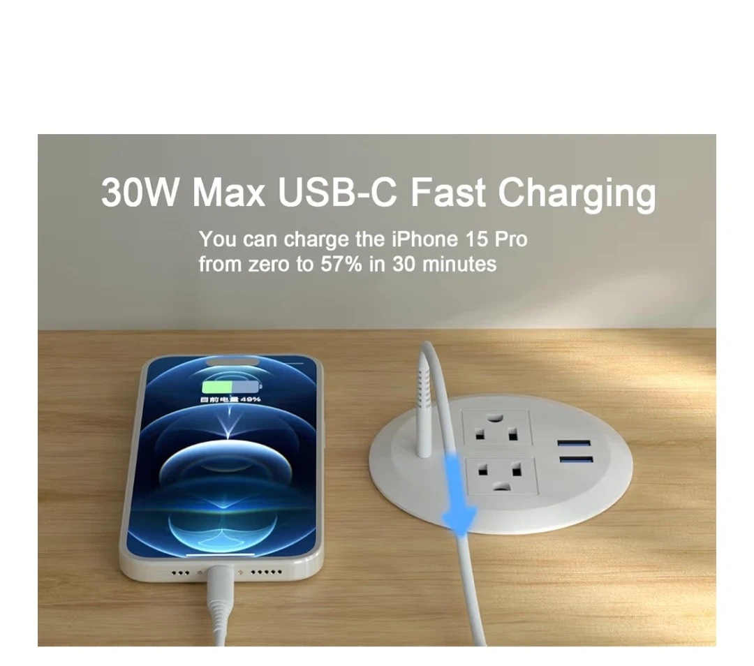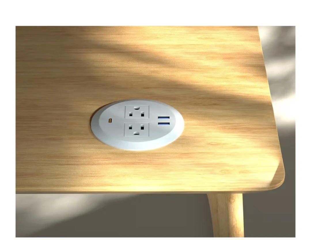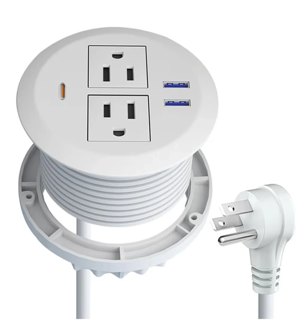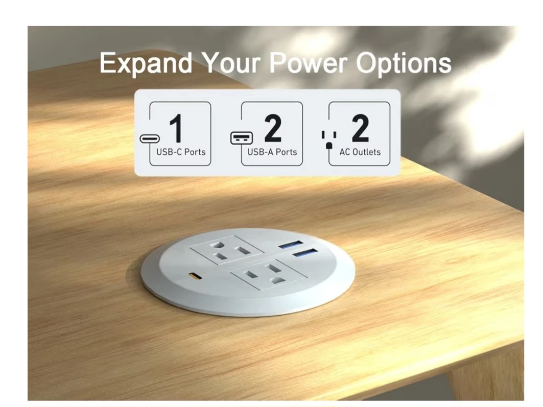 All-in-One Recessed Power Outlet - 2 AC outlets,2 USB-A ports,and 1 USB-C port power everything on your desk from a single recessed power grommet,6.26 ft extension cord