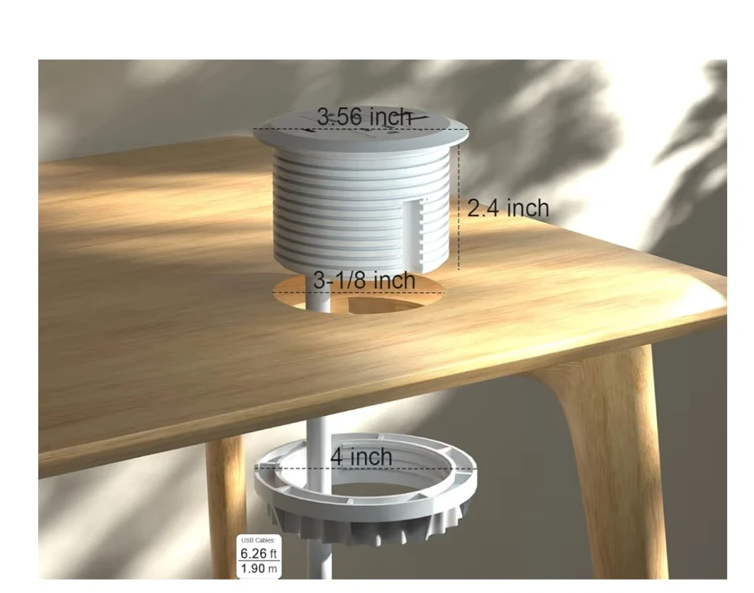 Super easy installation - Insert the desktop power grommet into the 3-1/8-inch desk grommet hole,rotary locking ring