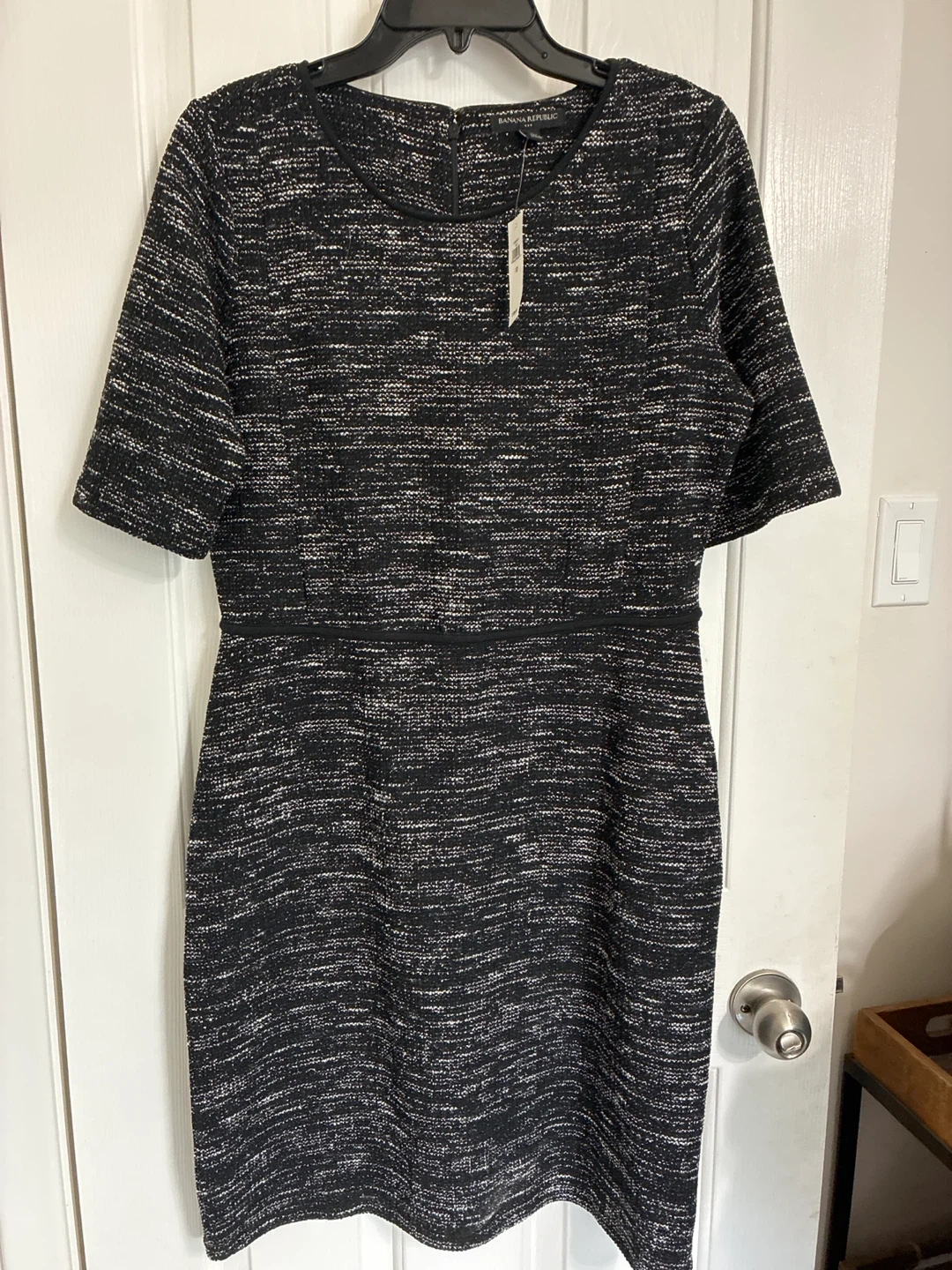Banana Republic dress in a black and white tweed pattern. It's a size 12 and is brand new w tags. Originally bought for $99.99