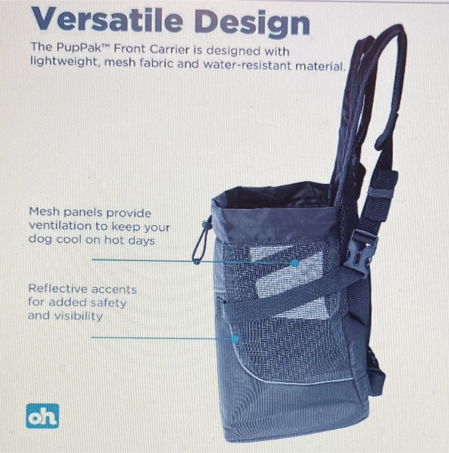 This PupPak front carrier is designed with lightweight, mesh fabric and water-resistant material. Mesh panels provide ventilation to keep your dog cool. Ideal for pets up to 20 lbs.