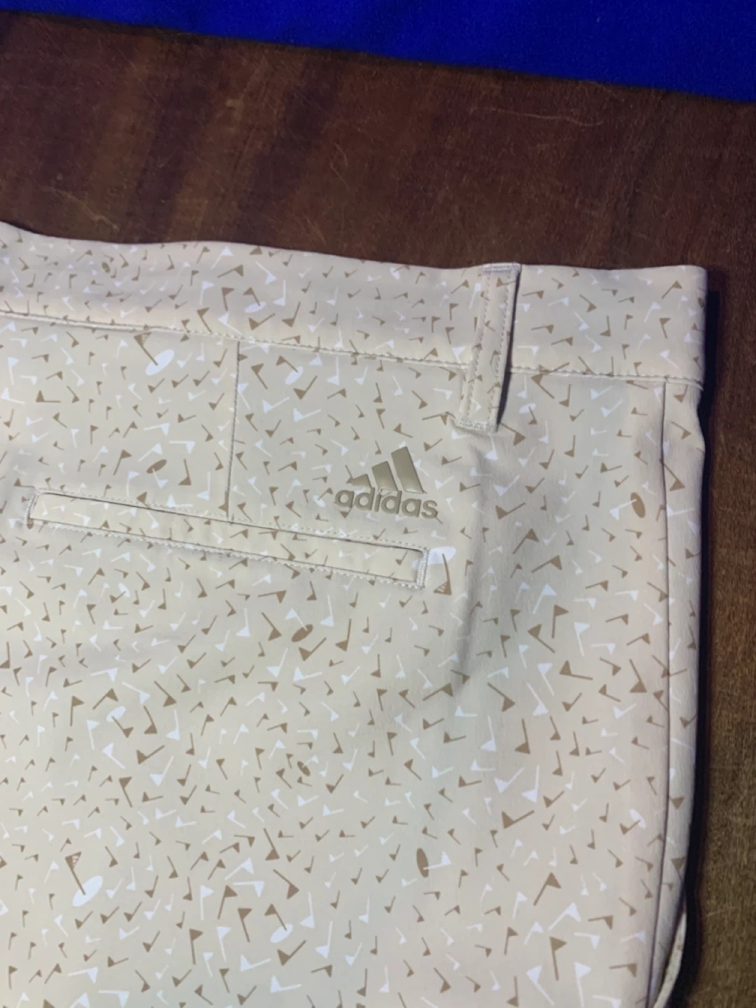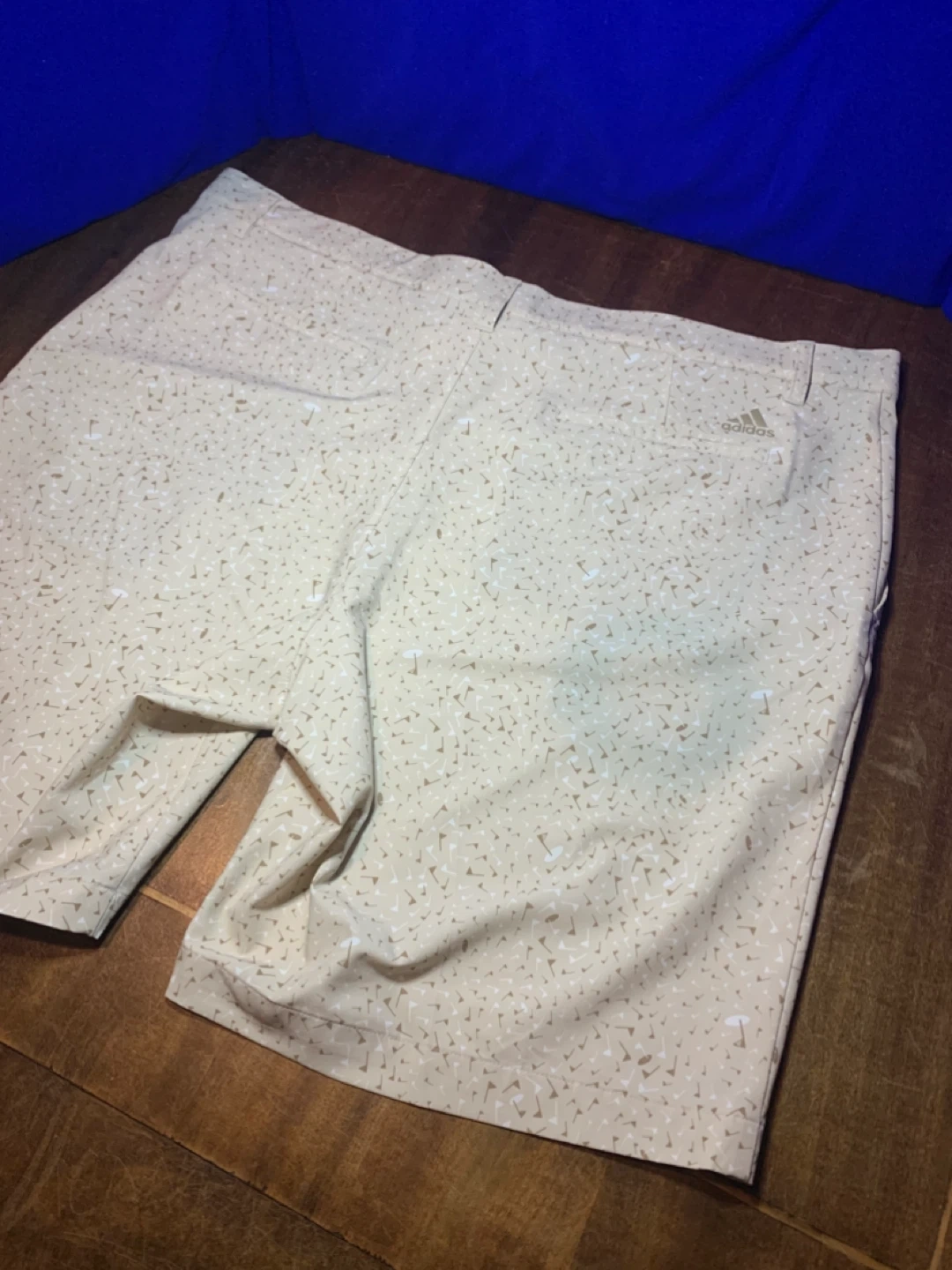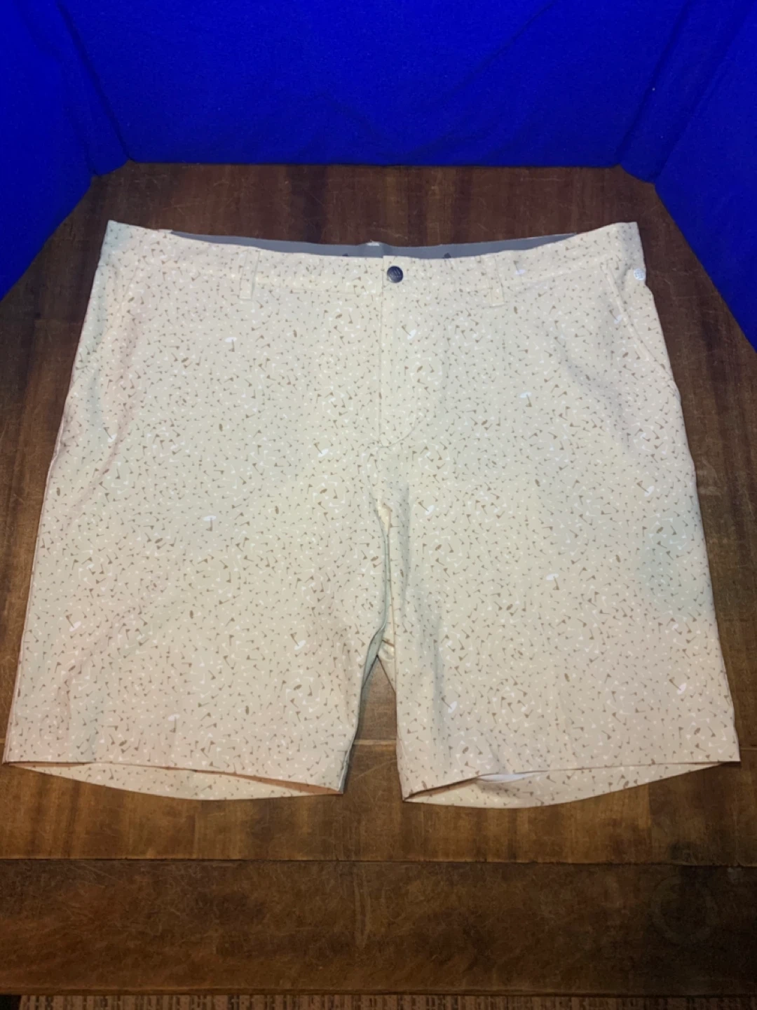 Men’s Adidas golf shorts in great condition. Lightweight performance material that’s comfortable and breathable on the course. Stylish beige pattern with subtle golf graphics.